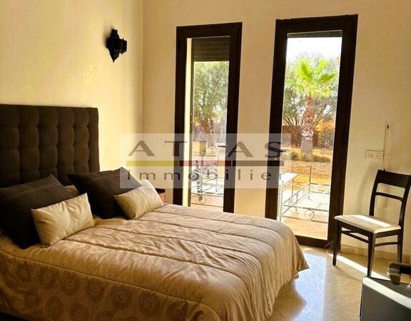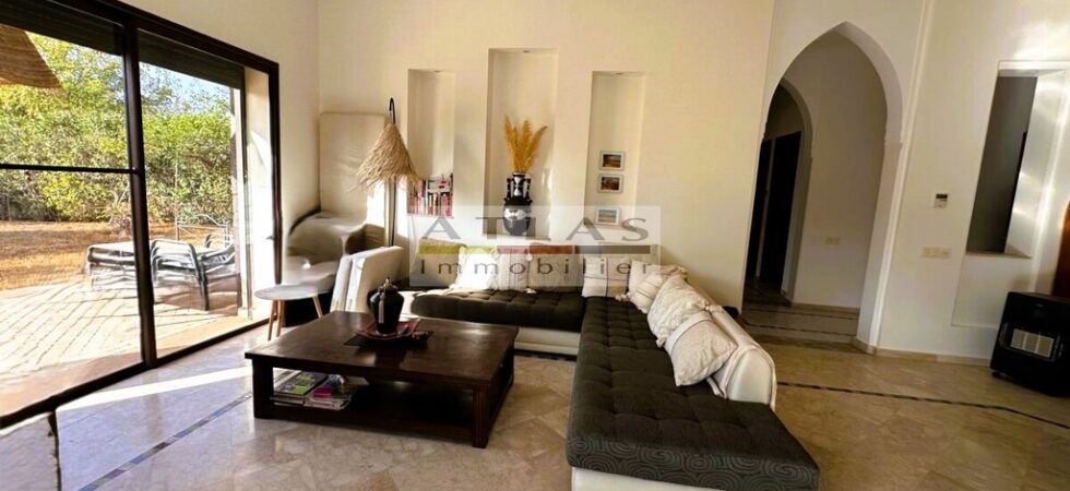 Découvrez cette superbe villa de plain-pied nichée dans une résidence privée et sécurisée, à seulement 20 minutes de Marrakech. Idéale pour les amoureux de la tranquillité, cette propriété allie confort, élégance et intimité dans un cadre verdoyant et apaisant.