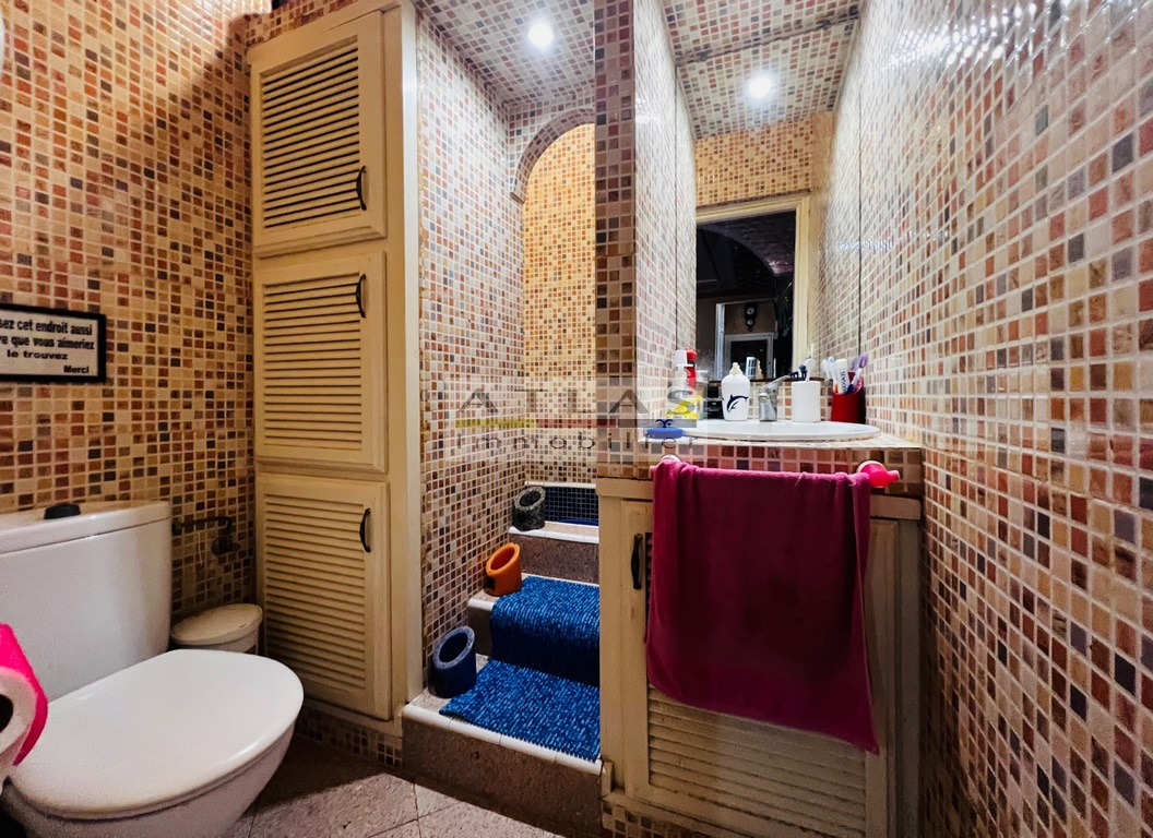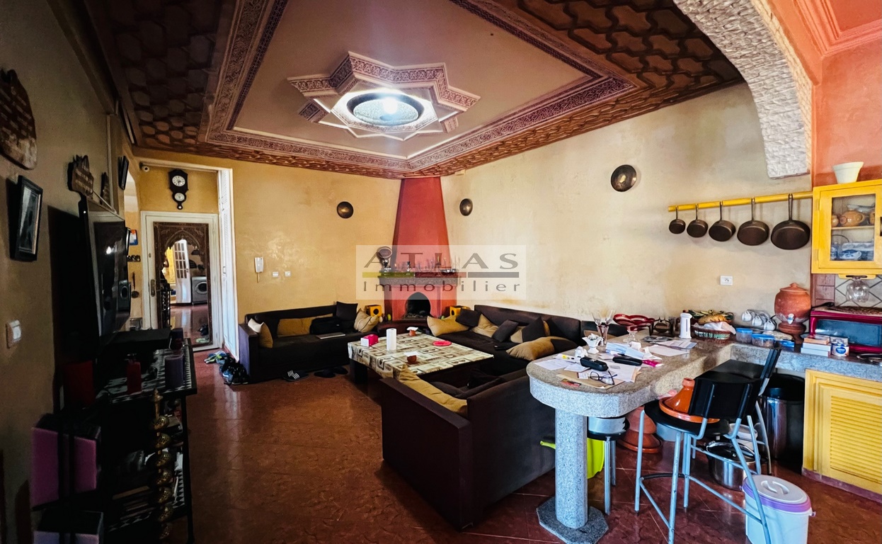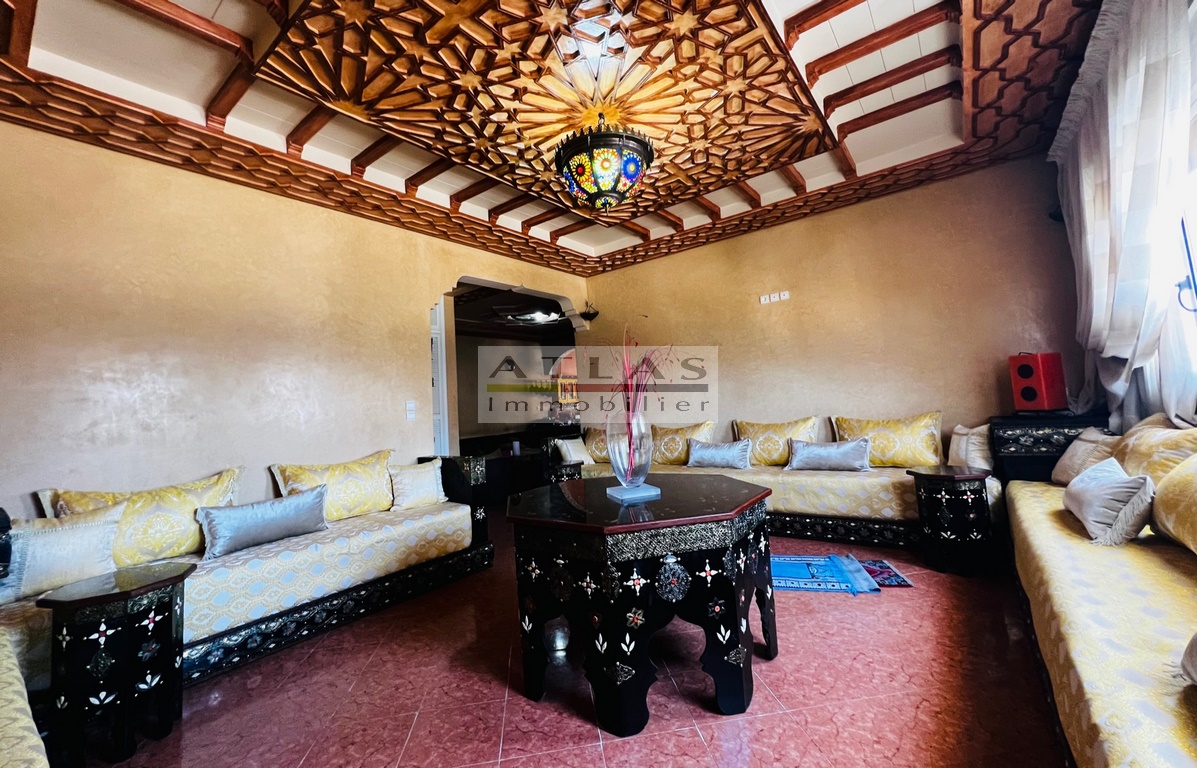 Avec une superficie de plus de 100 m², il offrait une belle entrée avec placards, un spacieux salon marocain, ainsi qu’un salon plus cosy avec cheminée et télévision, offrant un confort optimal.