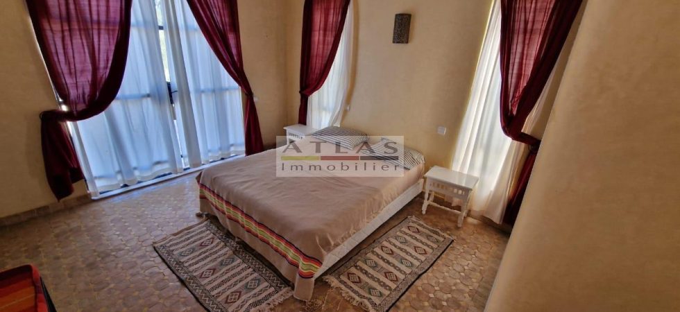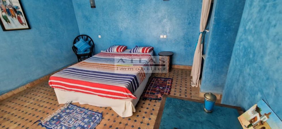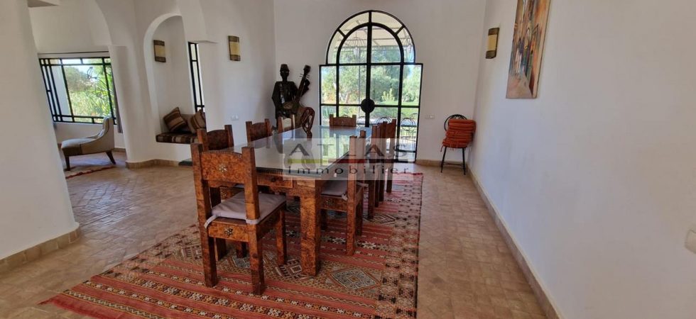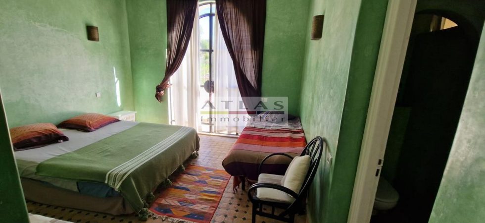 Découvrez cette magnifique villa vendue, située dans un cadre idyllique, à seulement dix minutes du centre d’Essaouira. Nichée sur un vaste terrain de 5 265 m², elle offre un havre de paix entouré de splendides arganiers et oliviers.