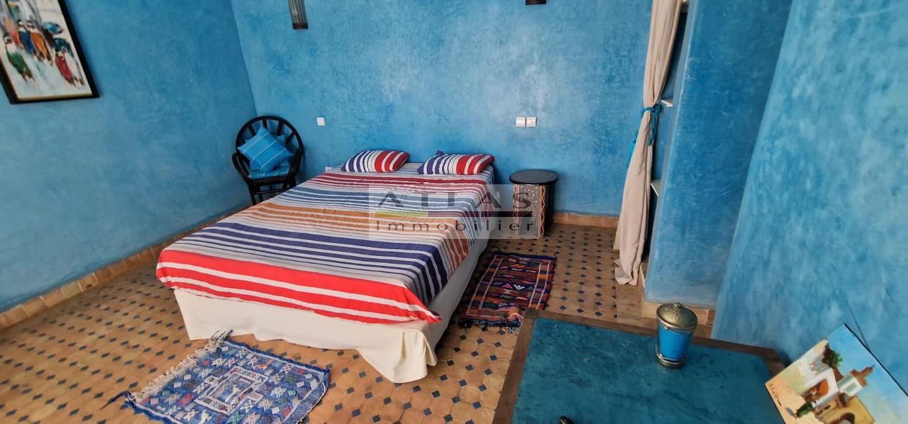 Découvrez cette magnifique villa vendue, située dans un cadre idyllique, à seulement dix minutes du centre d’Essaouira. Nichée sur un vaste terrain de 5 265 m², elle offre un havre de paix entouré de splendides arganiers et oliviers.