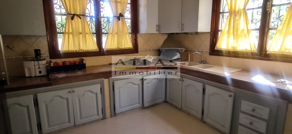 Profitez de plusieurs salons spacieux et lumineux, comprenant un grand salon marocain traditionnel, un salon de style européen et un espace salon/salle à manger. Une grande cuisine équipée est également disponible, ainsi que des sanitaires invités.