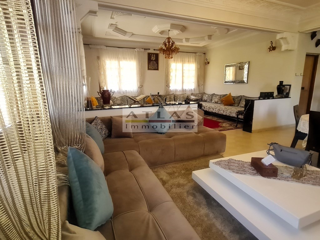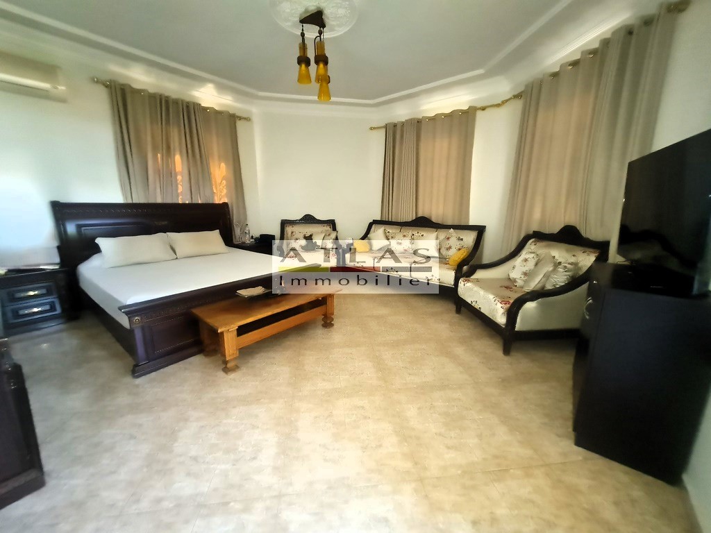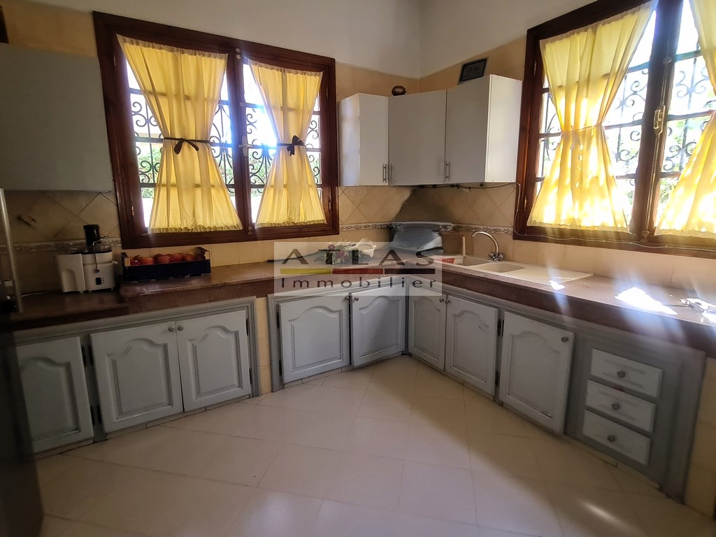 Profitez de plusieurs salons spacieux et lumineux, comprenant un grand salon marocain traditionnel, un salon de style européen et un espace salon/salle à manger. Une grande cuisine équipée est également disponible, ainsi que des sanitaires invités.