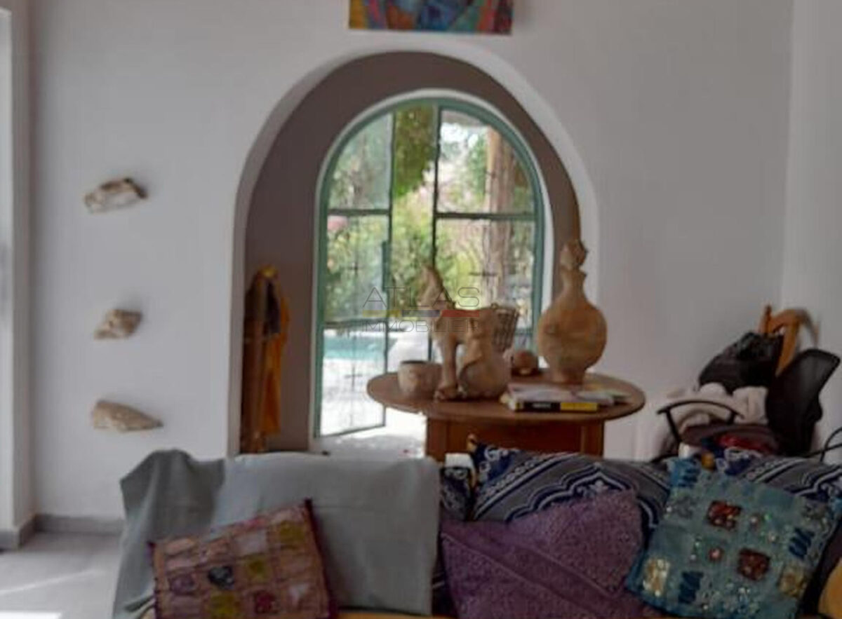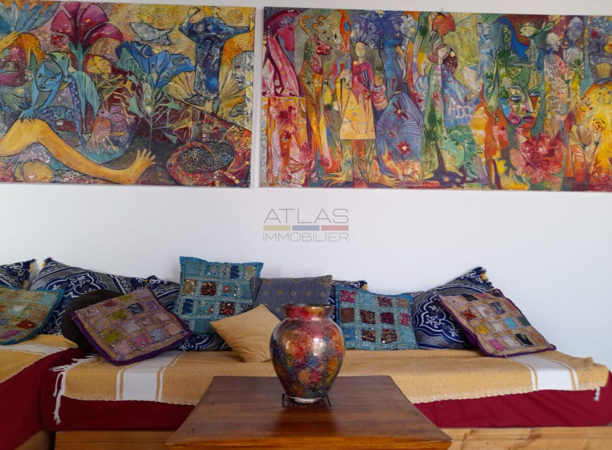 À louer en location saisonnière, cette villa meublée vous accueille dans un cadre calme et agréable sur la Route de Safi, à quelques minutes d’Essaouira. D’une capacité de 8 personnes, elle comprend 4 chambres confortables, un jardin arboré et une piscine privée, entretenue quotidiennement.