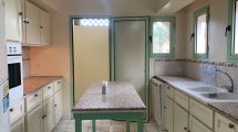 Grande cuisine avec arrière cuisine, une entrée spacieuse avec toilettes invités.
