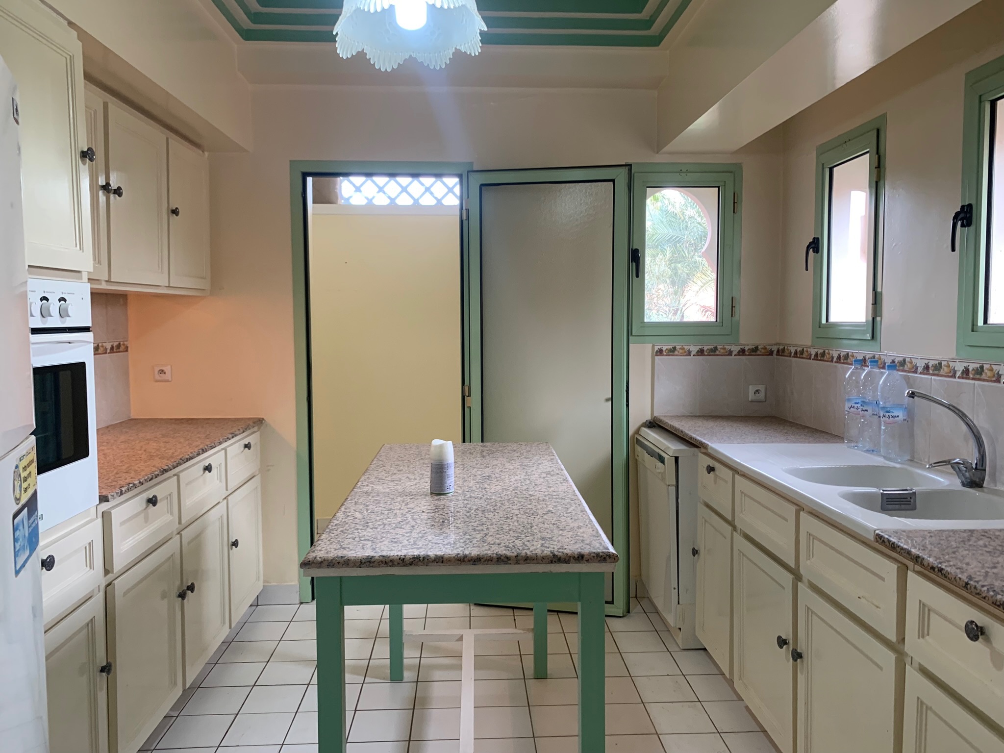 Grande cuisine avec arrière cuisine, une entrée spacieuse avec toilettes invités.