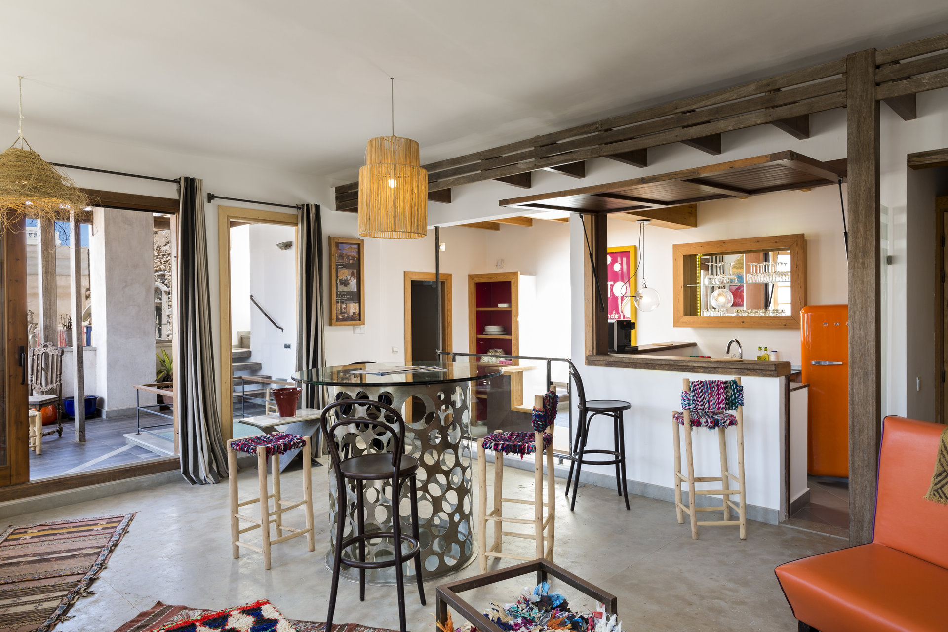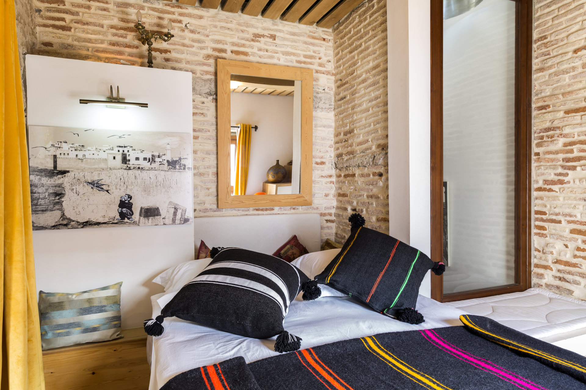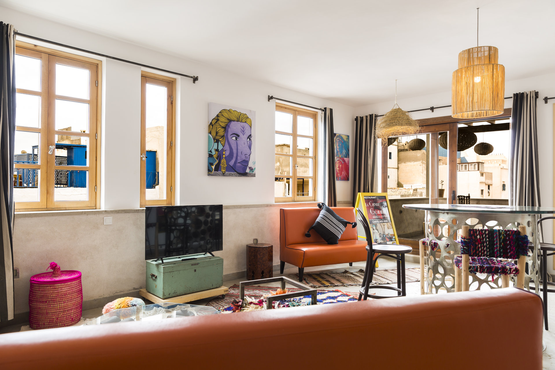 - Vues : Trois balcons au premier étage, une vaste pergola au deuxième étage, et une terrasse panoramique au troisième étage offrant une vue à 360° sur la ville et l’île de Mogador
