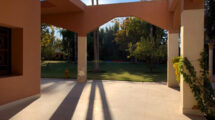 À l’extérieur, le jardin paysager entoure une vaste piscine avec son poolhouse, une maison de gardien et une majestueuse fontaine à l’entrée, offrant un cadre verdoyant et intime. La propriété bénéficie en outre de deux accès distincts, un avantage rare pour une villa de cette envergure à Targa.