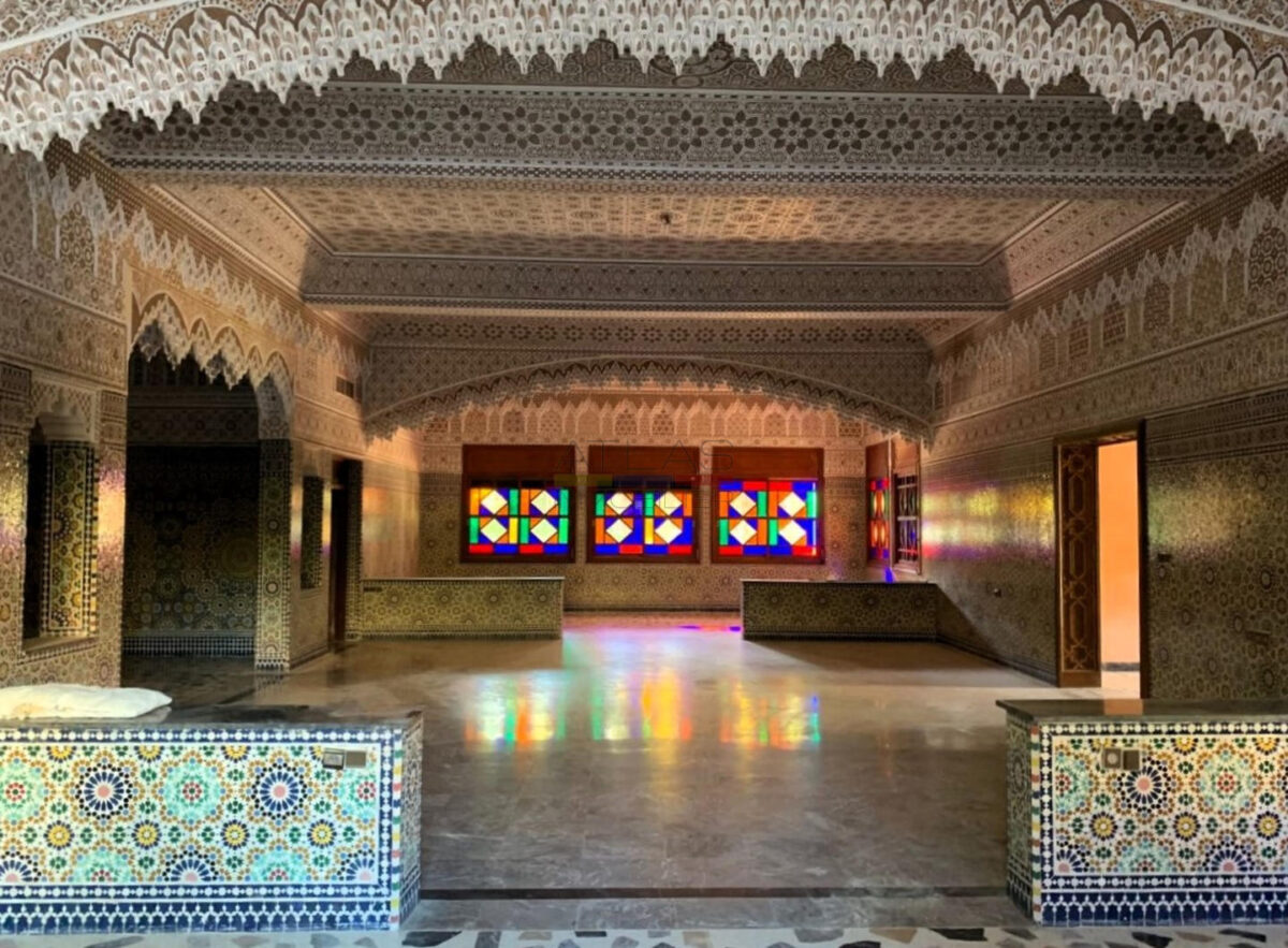 villa Targa Marrakech, maison d’hôtes Marrakech, projet immobilier Targa, terrain constructible Marrakech, grande villa avec piscine, jardin paysager Marrakech, villa traditionnelle Marrakech, hammam beldi Marrakech, villa avec suite parentale, investissement immobilier Targa