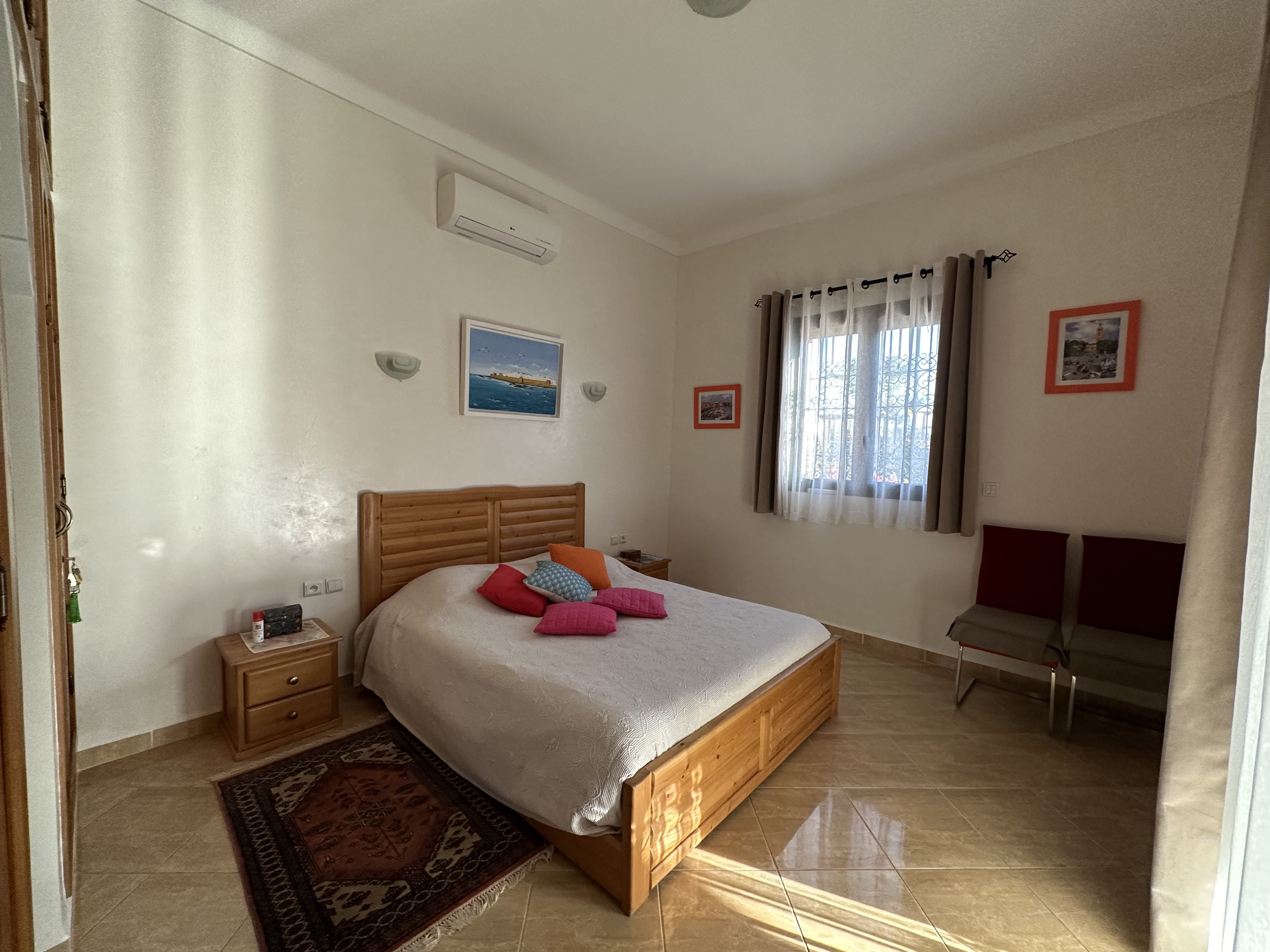 Bienvenue dans cette charmante villa, une véritable oasis de sérénité nichée au cœur de la campagne de Marrakech, à seulement 15 minutes du centre-ville. Offrant trois chambres spacieuses, une piscine somptueuse et un vaste terrain de 1300 mètres carrés, cette propriété est un rêve devenu réalité pour les amoureux de la nature et de la vie en plein air.