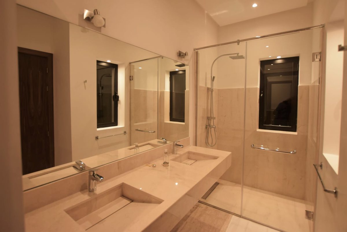 Superficie habitable de 400 m² construite sur un terrain de 4500 m², cette villa est composée au rez-de-chaussée d’un hall d’entrée avec salle de douche invités, trois chambres avec salle de bain et terrasse individuelle, un séjour lumineux composé de trois espaces ainsi qu’une cuisine.