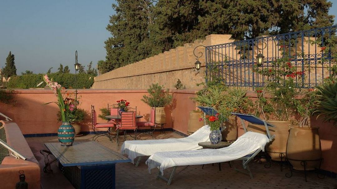Idéalement située dans la plus belle partie du quarter Mouassine, à moins de 10 minutes de Jemaa El Fna, cette maison d’hôtes réputée est proposée à la vente meublée, clés en main avec équipe en place.  Sa terrasse donne directement sur les jardins du Palais de Dar el Bacha.