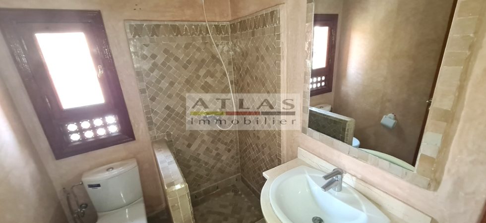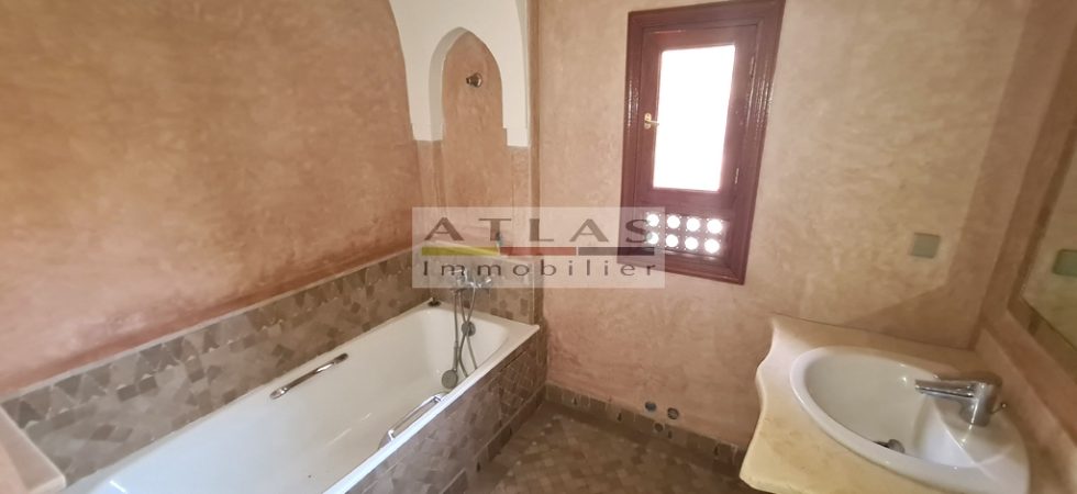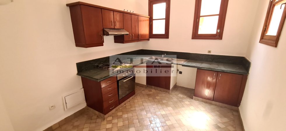 A quelques minutes du centre ville de Marrakech, dans une belle résidence avec piscine, ce très bel appartement en location longue durée d’une superficie de 135 m² est situé au premier étage.