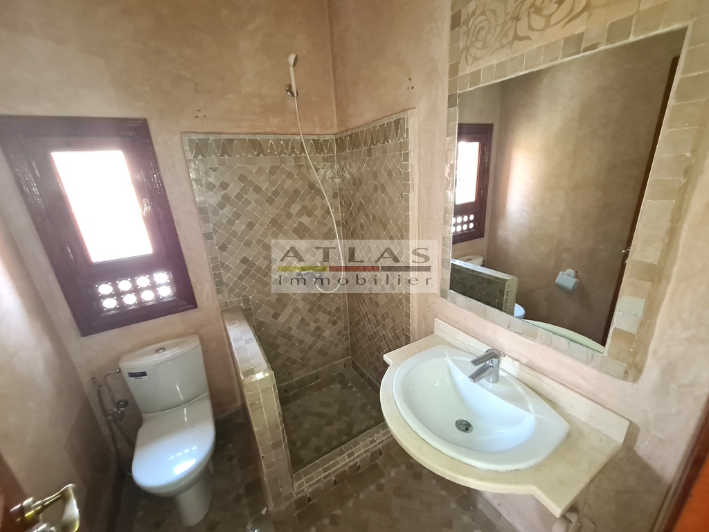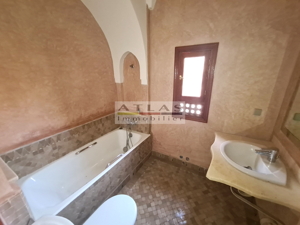 A quelques minutes du centre ville de Marrakech, dans une belle résidence avec piscine, ce très bel appartement en location longue durée d’une superficie de 135 m² est situé au premier étage.