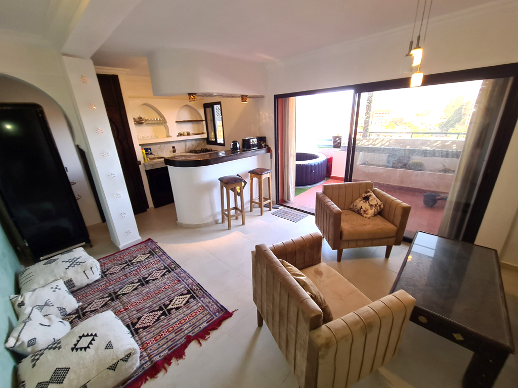 Marrakech : Appartement roof-top avec Jacuzzi en dernier étage, zéro vis-à-vis