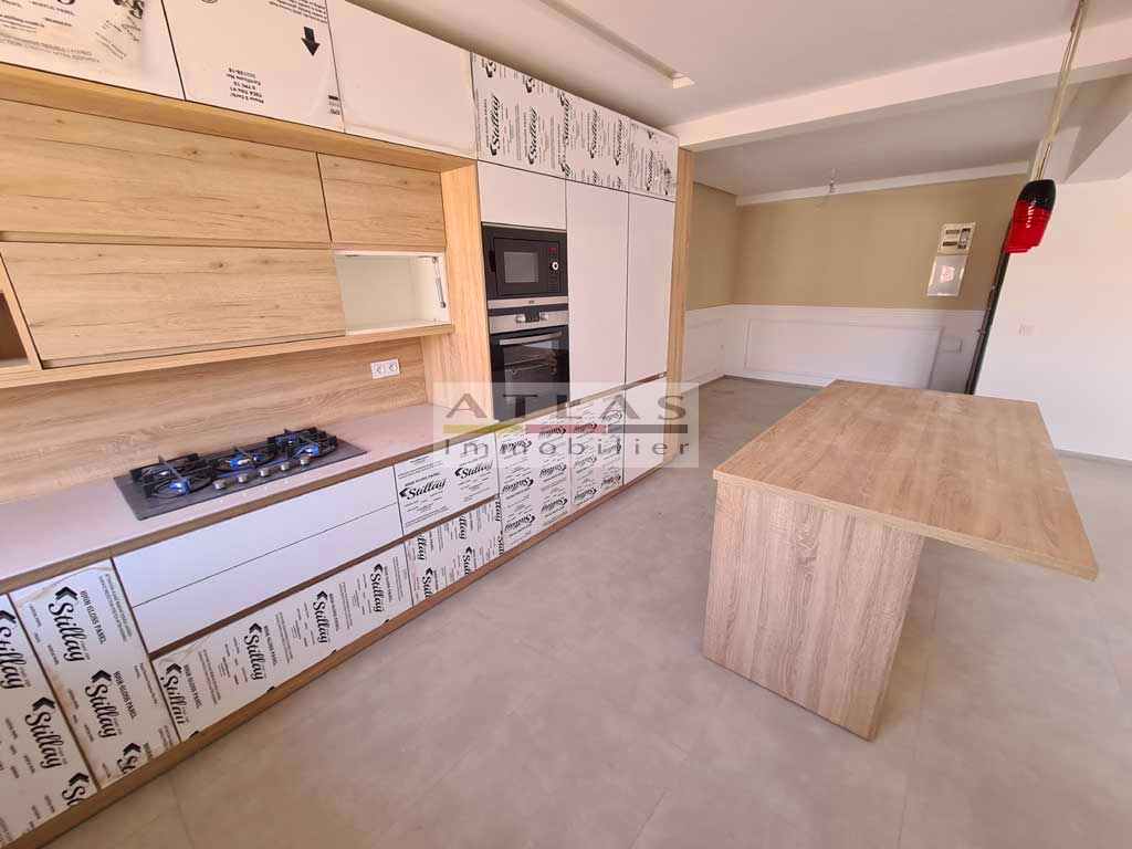 - Une cuisine américaine entièrement équipée, (feux gaz, four, micro-onde, frigo, machine à laver le linge, lave-vaisselle),
