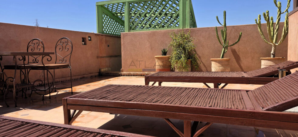 Solarium et sur-terrasse avec vue panoramique sur la médina et les montagnes de l’Atlas