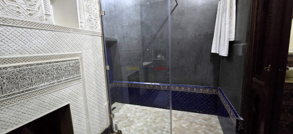 Destiné aux véritables amateurs d’art arabo-mauresque, ce riad séduira les connaisseurs sensibles à l’authenticité et au raffinement de l’artisanat traditionnel. Conçu dans la plus pure tradition : stucs ciselés, gibs, authentiques zelliges, tadelakt, bois de cèdre… Initialement édifié pour des notables en quête d’excellence, ce bien a été transformé avec soin en maison d’hôtes de première catégorie, parfaitement équipée et optimisée pour l’accueil.