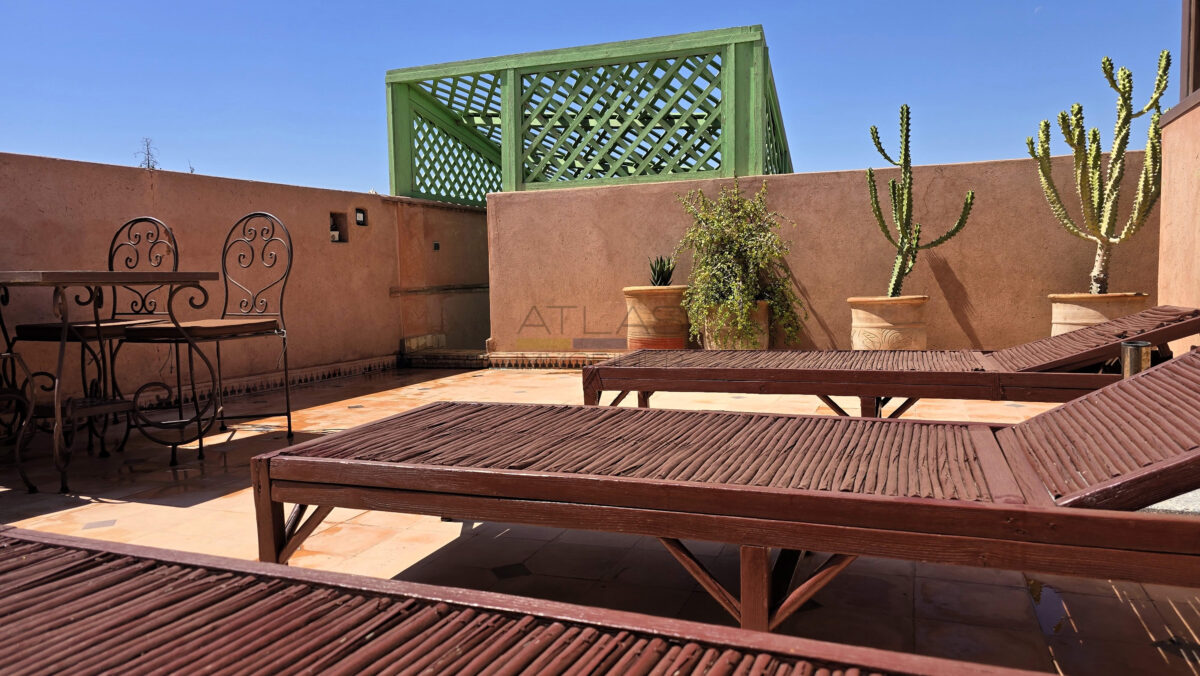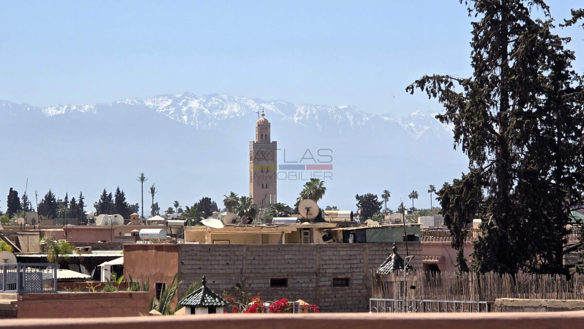 Solarium et sur-terrasse avec vue panoramique sur la médina et les montagnes de l’Atlas