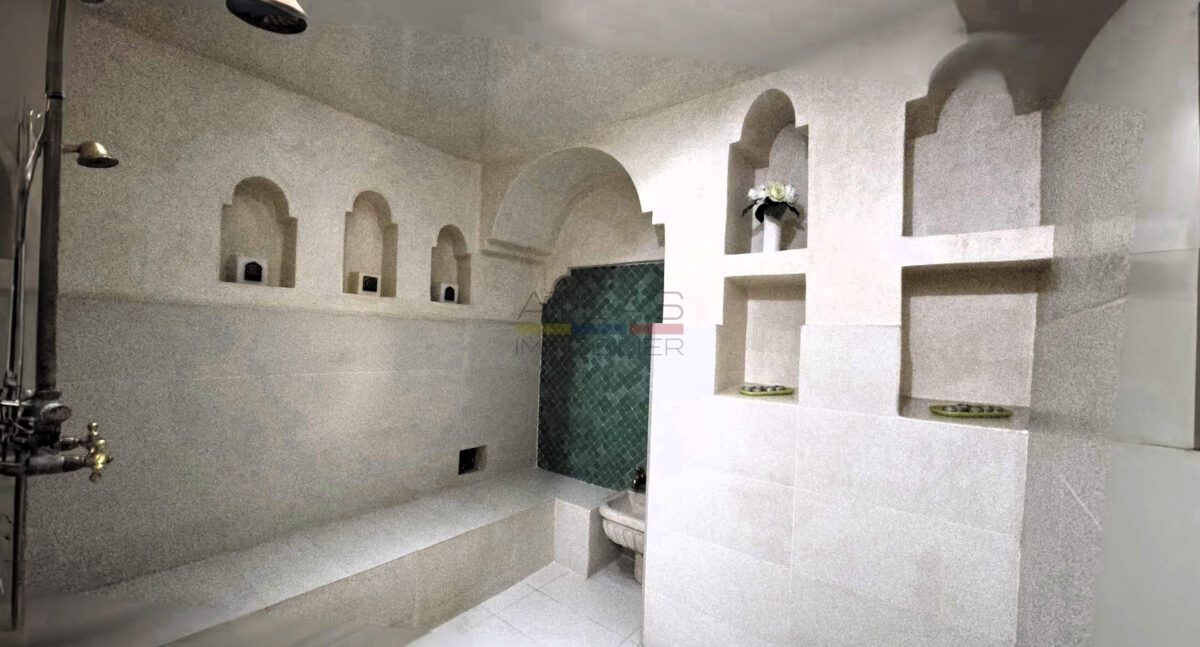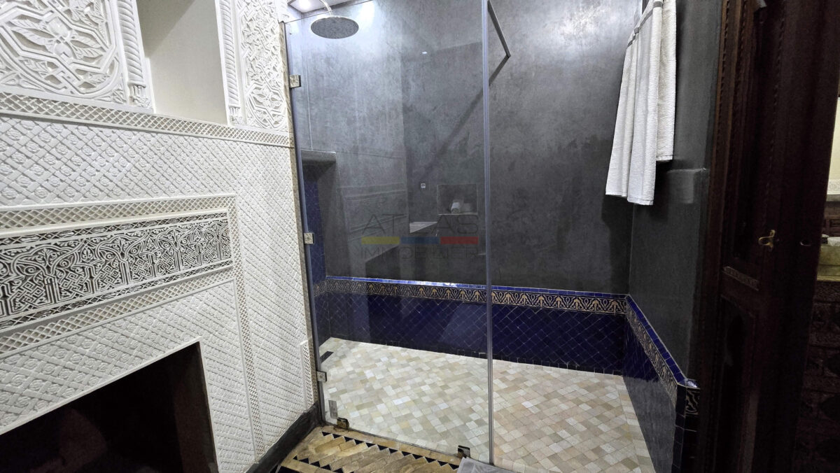Destiné aux véritables amateurs d’art arabo-mauresque, ce riad séduira les connaisseurs sensibles à l’authenticité et au raffinement de l’artisanat traditionnel. Conçu dans la plus pure tradition : stucs ciselés, gibs, authentiques zelliges, tadelakt, bois de cèdre… Initialement édifié pour des notables en quête d’excellence, ce bien a été transformé avec soin en maison d’hôtes de première catégorie, parfaitement équipée et optimisée pour l’accueil.