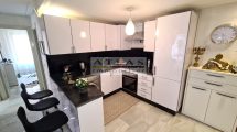 L’appartement offre deux salons dont un pouvant être aménagé en troisième chambre, une cuisine Américaine équipée, frigo encastré, four, plaques gaz, hotte et lave-linge.