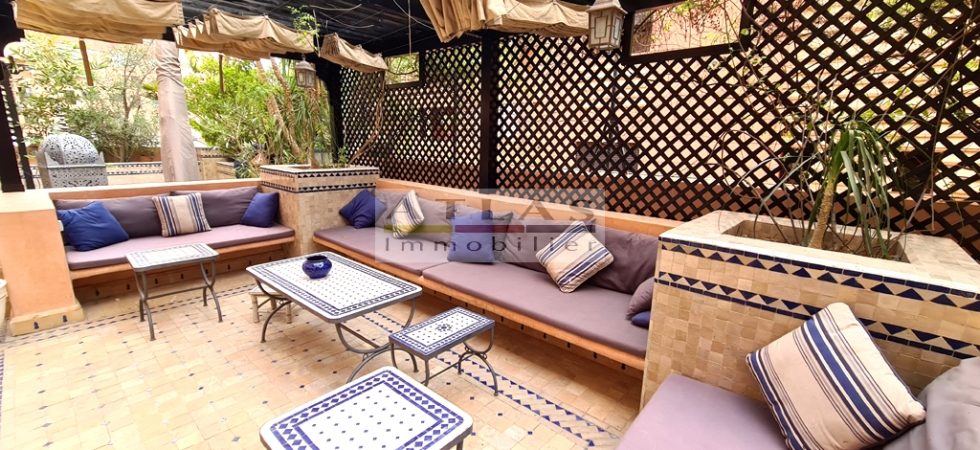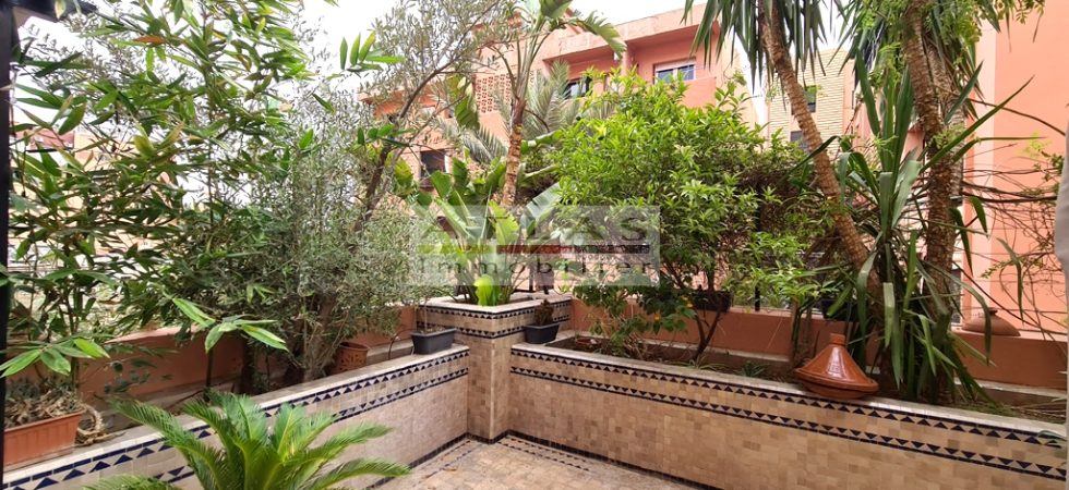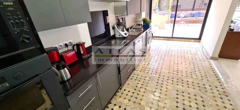 Magnifique et très spacieux appartement en vente à Marrakech, situé dans l’hypercentre du quartier de Guéliz, d’une superficie de 216 m² titrés dont 89 m² de terrasse aménagée avec beaucoup de goût et Jacuzzi.
