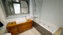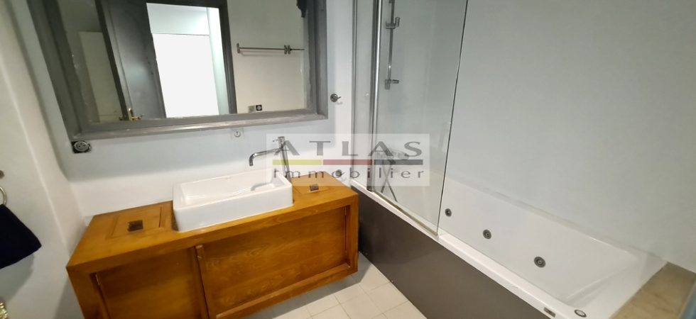 L’appartement offre un immense salon – salle à manger très lumineuse qui donne sur une vraie terrasse, une cuisine Américaine ouverte équipée frigo, four, plaques et hotte.