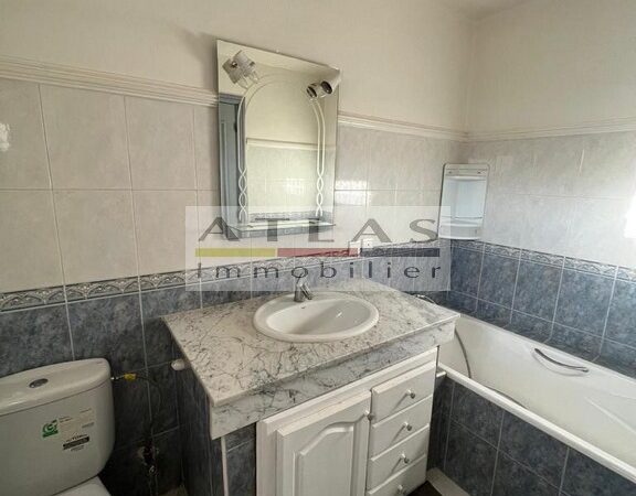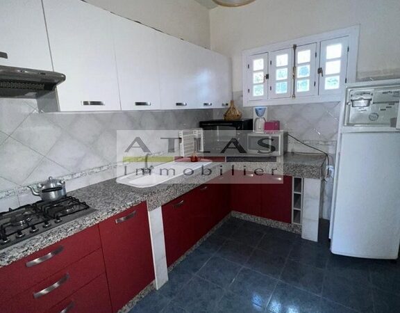 - Étage : Vous trouverez deux belles chambres, chacune dotée de sa propre terrasse, vous offrant un espace personnel pour profiter du soleil marocain. Une grande salle de bain complète cet étage, alliant confort et fonctionnalité.