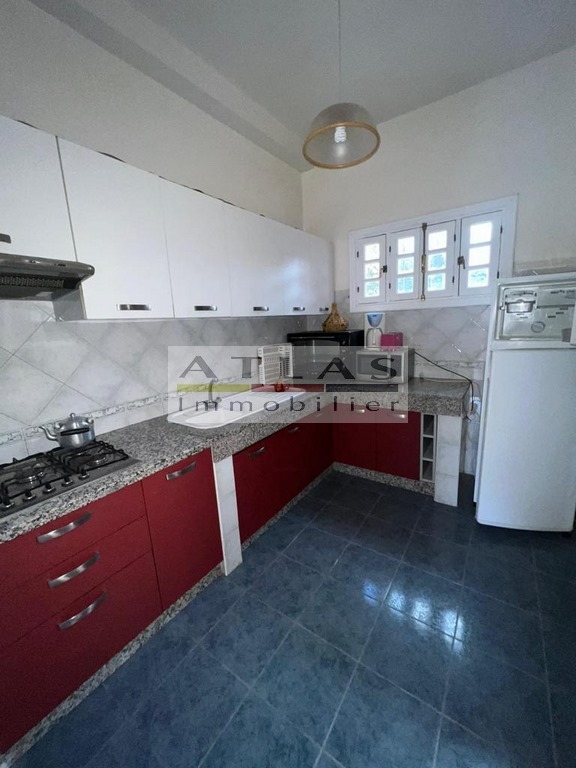 - Étage : Vous trouverez deux belles chambres, chacune dotée de sa propre terrasse, vous offrant un espace personnel pour profiter du soleil marocain. Une grande salle de bain complète cet étage, alliant confort et fonctionnalité.