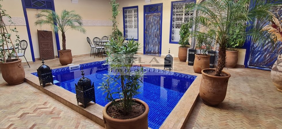 Ce Riad de 150 m², avec près de 70 m² de patio, est situé dans un quartier prisé de la médina. En entrant, vous découvrirez un hall de réception menant à un magnifique patio avec un bassin de 3m sur 4m, ainsi qu’un salon bhou, trois chambres avec leurs salles de bains respectives.