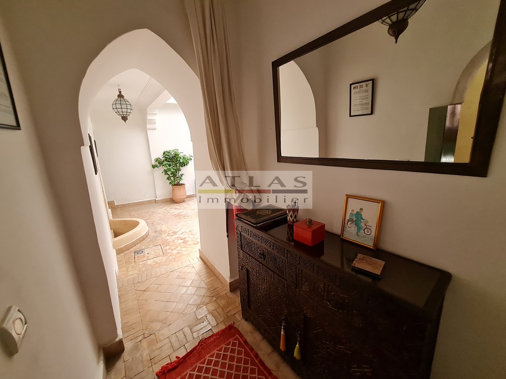 Vente d’un riad de trois chambres et trois salles de bain situé dans le quartier de Derb Dabachi à Marrakech.