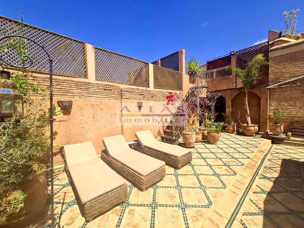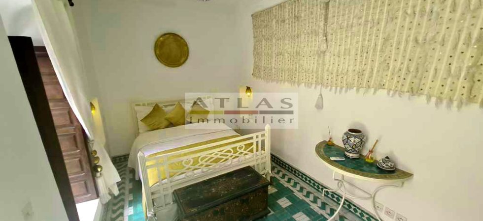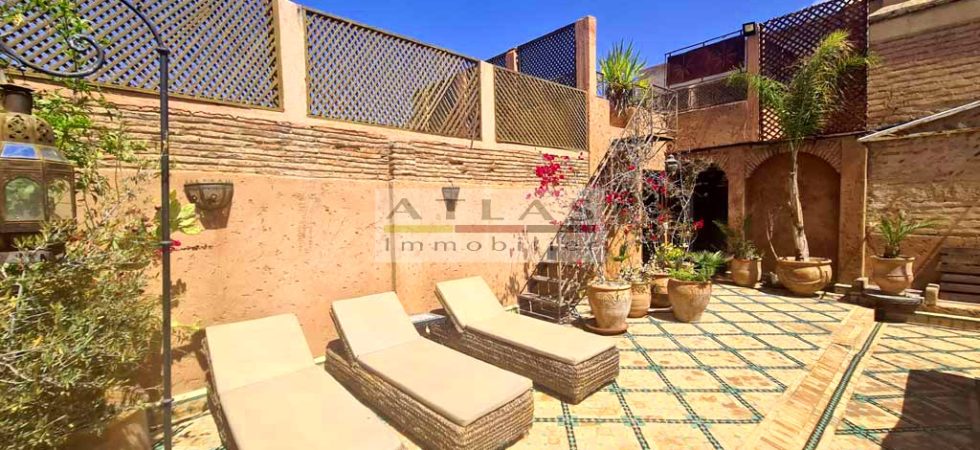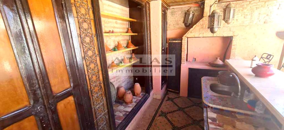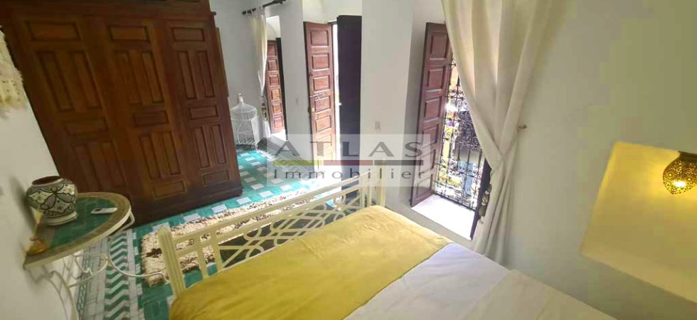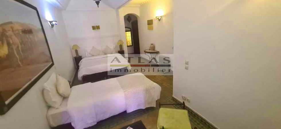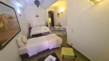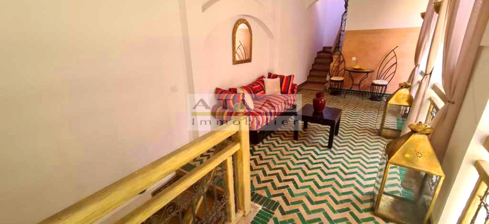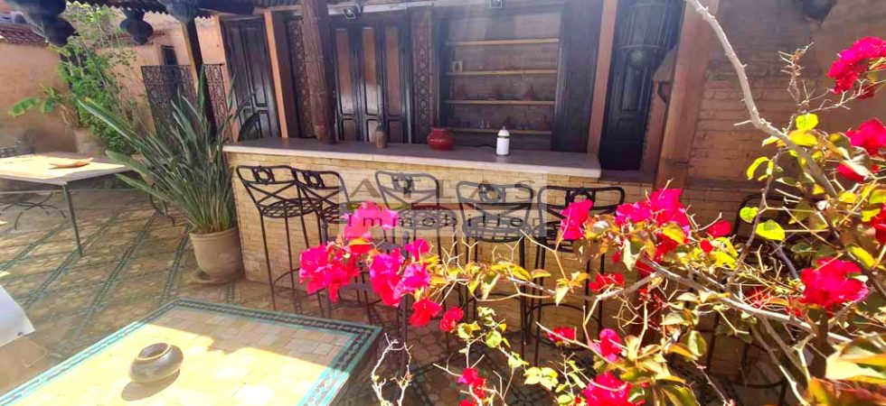 Dans un des quartiers très convoités des touristes de la Médina de Marrakech, à seulement 300 mètres de la place Jemaa El Fna, magnifique riad de six chambres dont une suite, toutes avec leurs salles de douches/bains, toutes différentes et personnalisées, d’une superficie au sol de 171 m² vous offre un mélange harmonieux entre beauté et luxe discret.