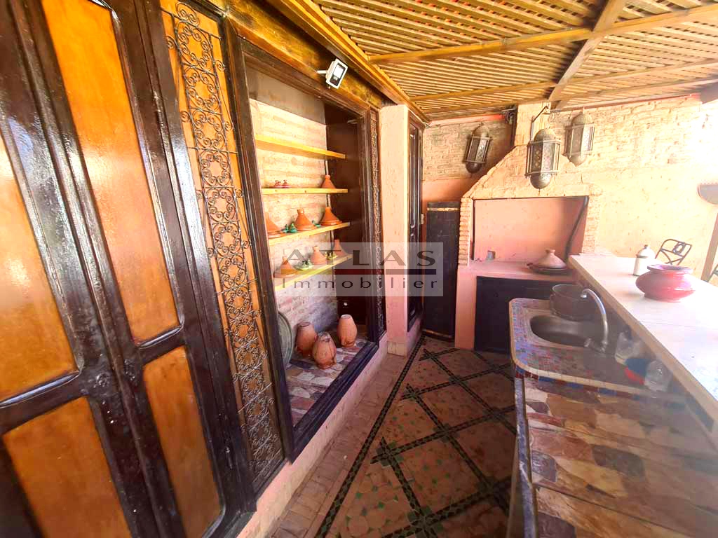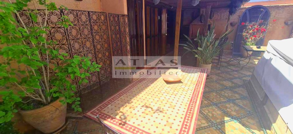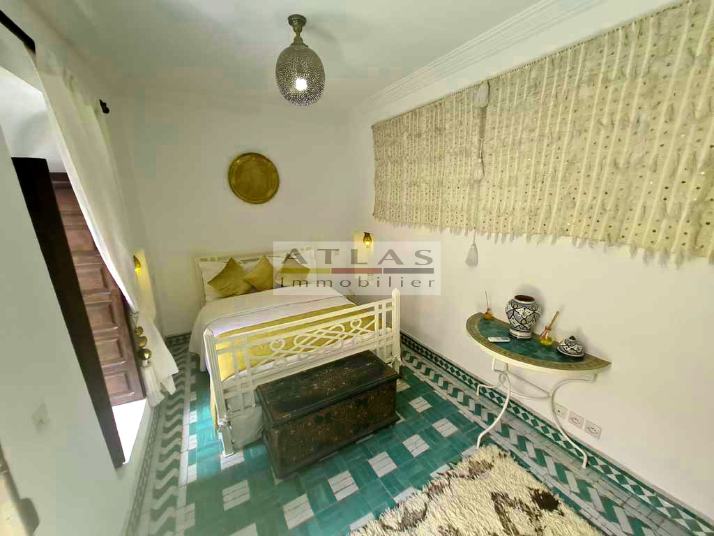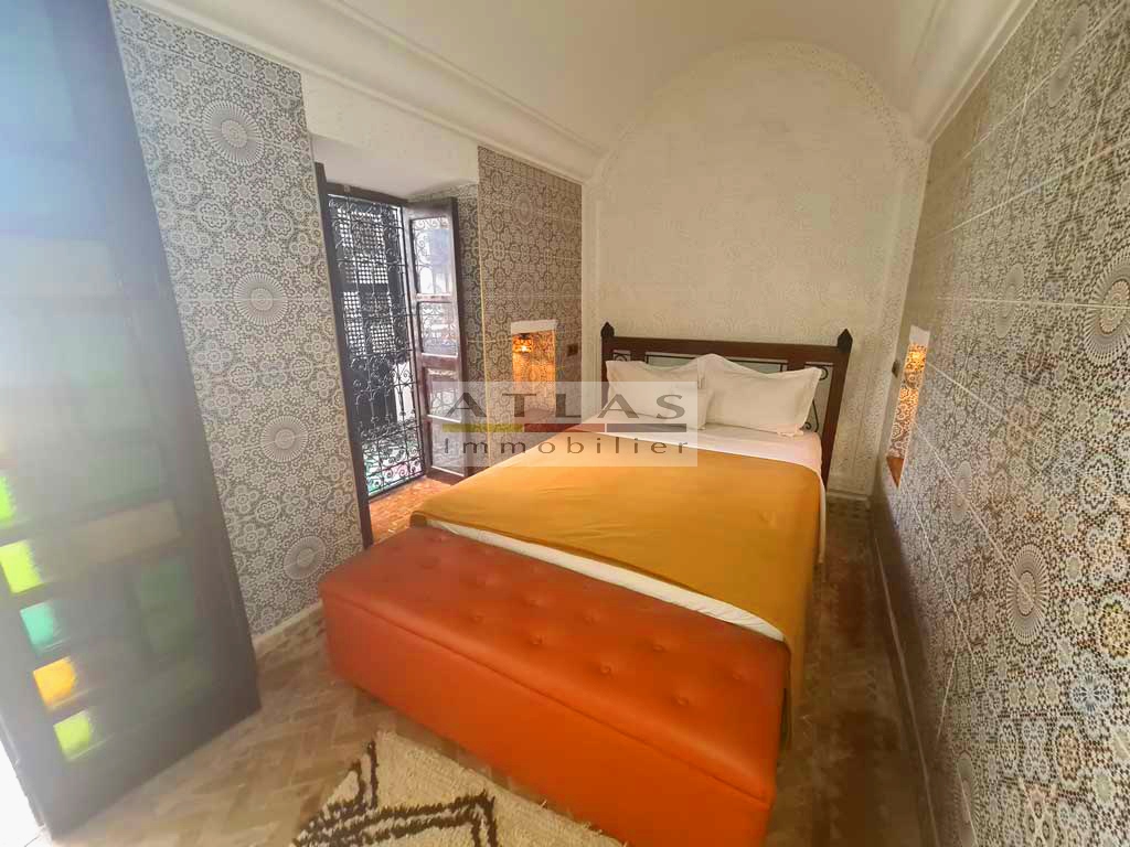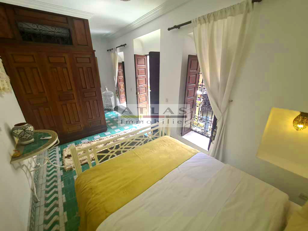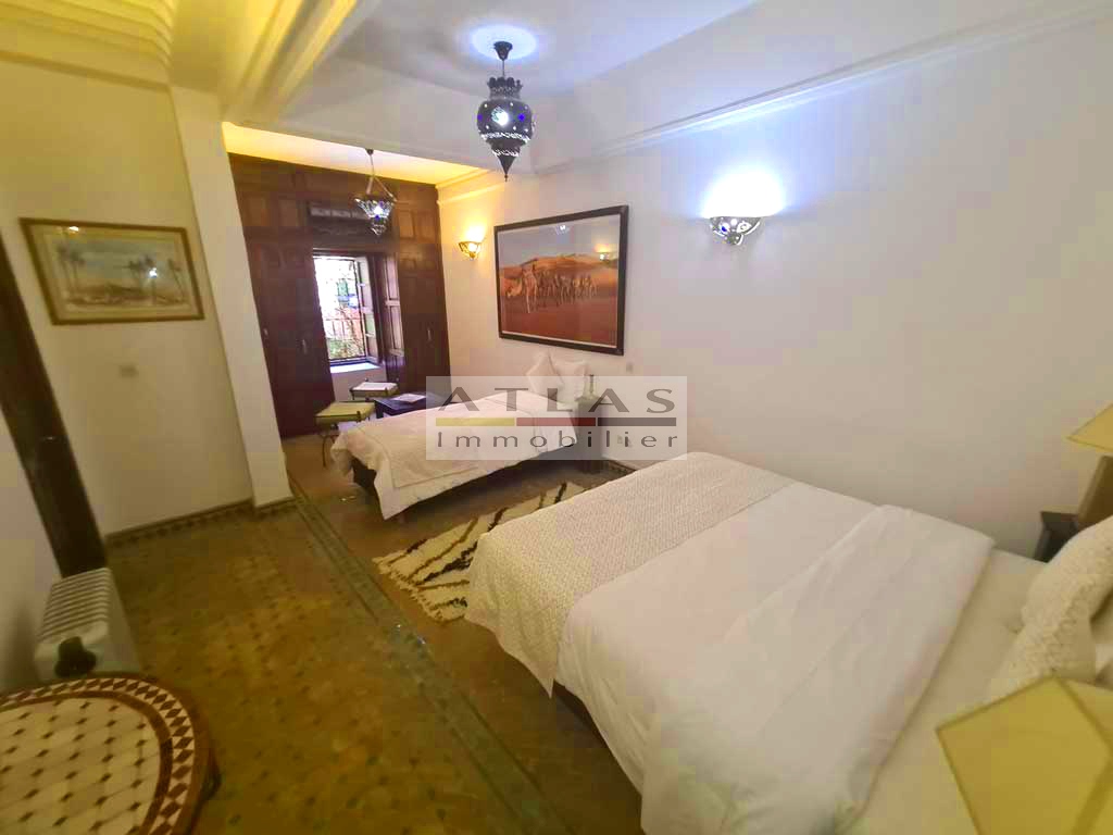 Dans un des quartiers très convoités des touristes de la Médina de Marrakech, à seulement 300 mètres de la place Jemaa El Fna, magnifique riad de six chambres dont une suite, toutes avec leurs salles de douches/bains, toutes différentes et personnalisées, d’une superficie au sol de 171 m² vous offre un mélange harmonieux entre beauté et luxe discret.