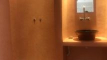 Il se compose d’un salon avec une cheminée, deux chambres avec chacune sa salle de bain, la cuisine, un debarras et une toilette invité