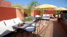 Le Riad est composé de six grandes chambres climatisées (dont deux triples) avec chacune leur salle de bain, d’un salon-salle à manger avec feu ouvert, d’une très grande terrasse.
