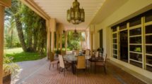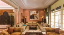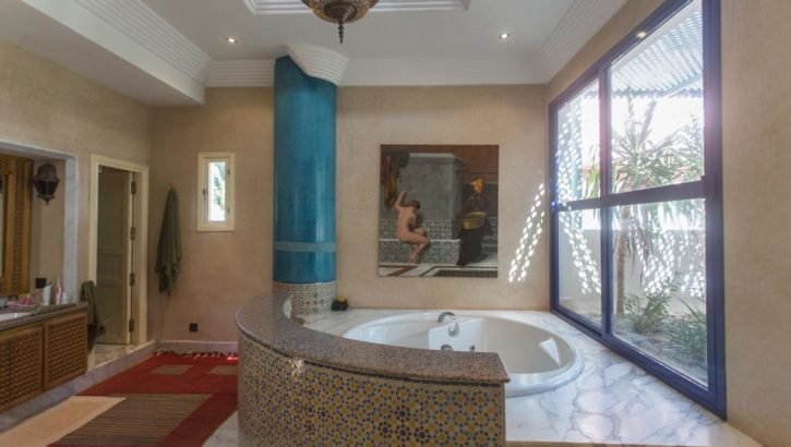Cette propriété construite en pierre de 25ans est nichée au cœur d’un parc arboré d’un peu plus d’un hectare dans la partie la plus ancienne de la Palmeraie à 10 mnt du centre ville. Elle est composée de 3 salons, 1 salle à manger, 1 bureau à l entrée, 1 patio, 1 salon marocain de 50 m2, 1 grande de cuisine, 1 cuisine pour le personnel,1 coure de 300 m2