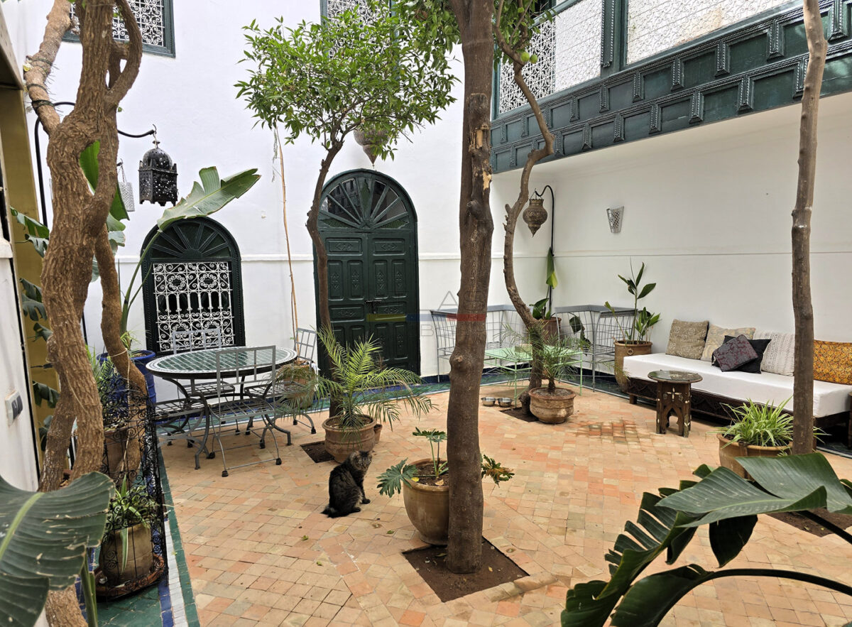 Idéalement situé dans le quartier recherché de Douar Graoua, à seulement quelques minutes à pied de la célèbre place Jemaa el-Fna, ce riad traditionnel séduit par son atmosphère paisible et son authenticité. Niché au calme d’une impasse, à proximité immédiate d’un établissement réputé, il bénéficie d’un emplacement privilégié au cœur de la médina, avec un accès voiture à environ 100 mètres et un parking gardé à 200 mètres.