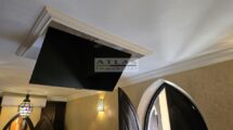 L’étage propose quatre suites élégantes, chacune disposant de sa propre salle de bain. L’une d’elles offre un balcon en ébrasement, tandis que la suite principale séduit avec son volume généreux et une télévision rétractable intégrée au plafond.
