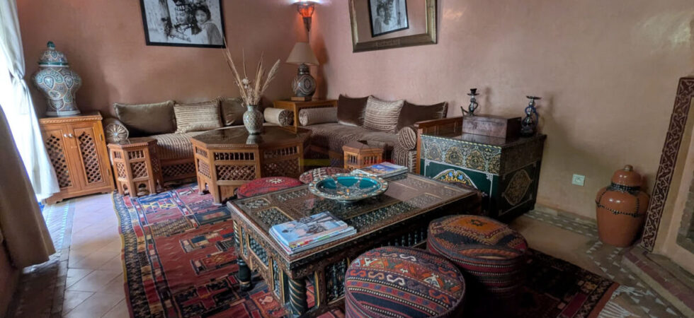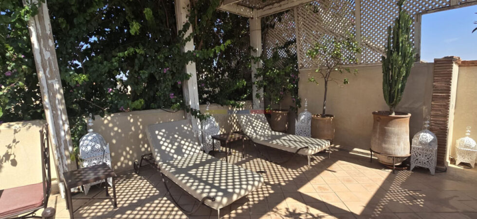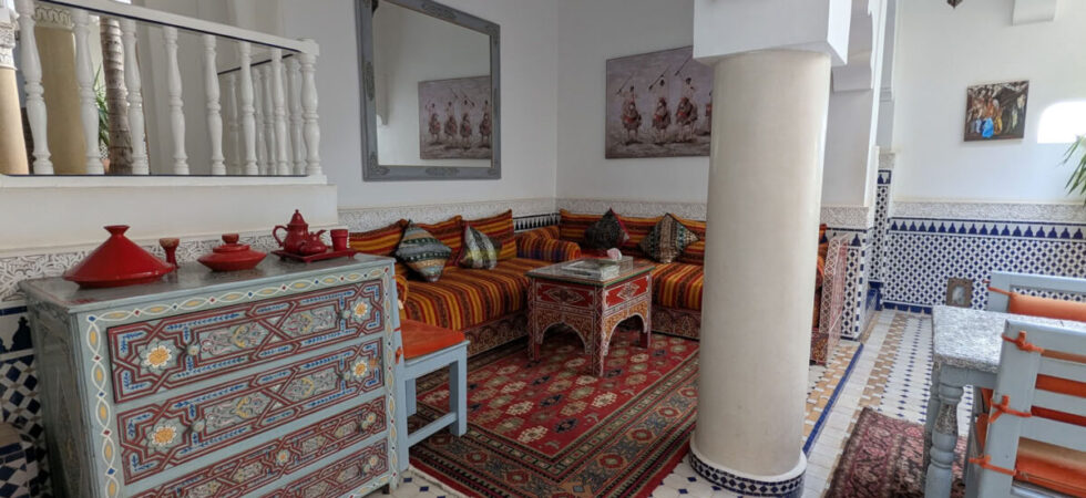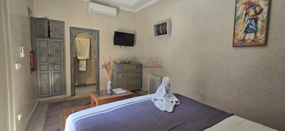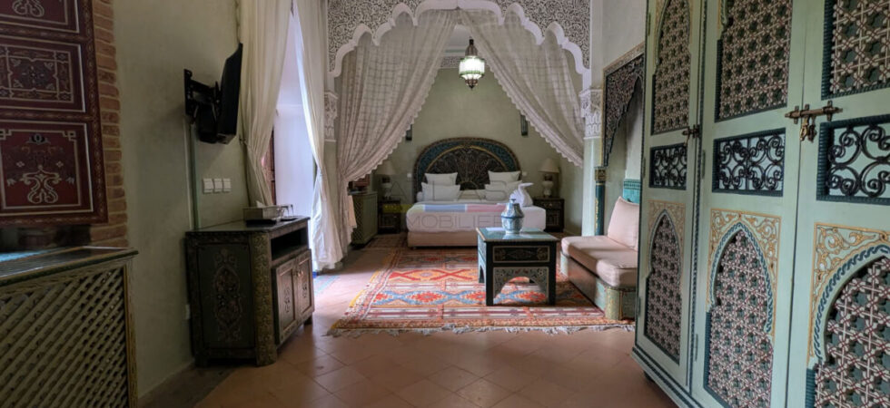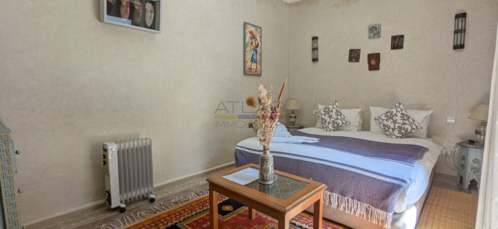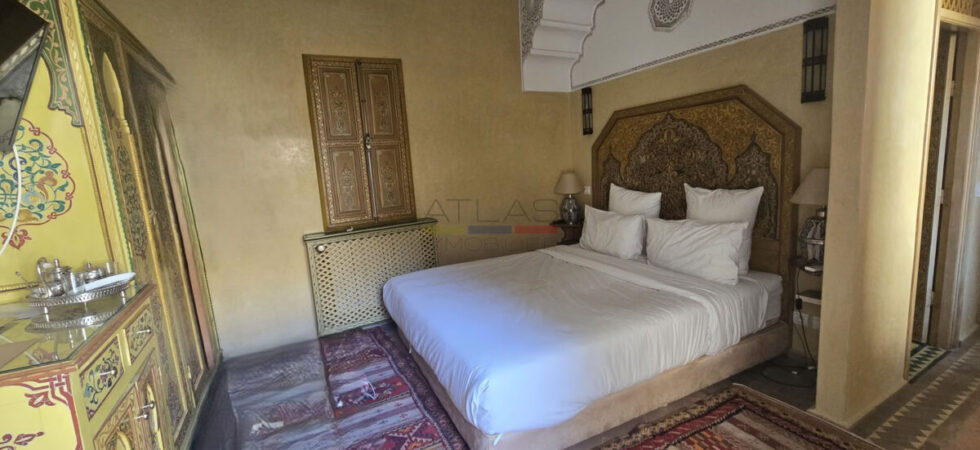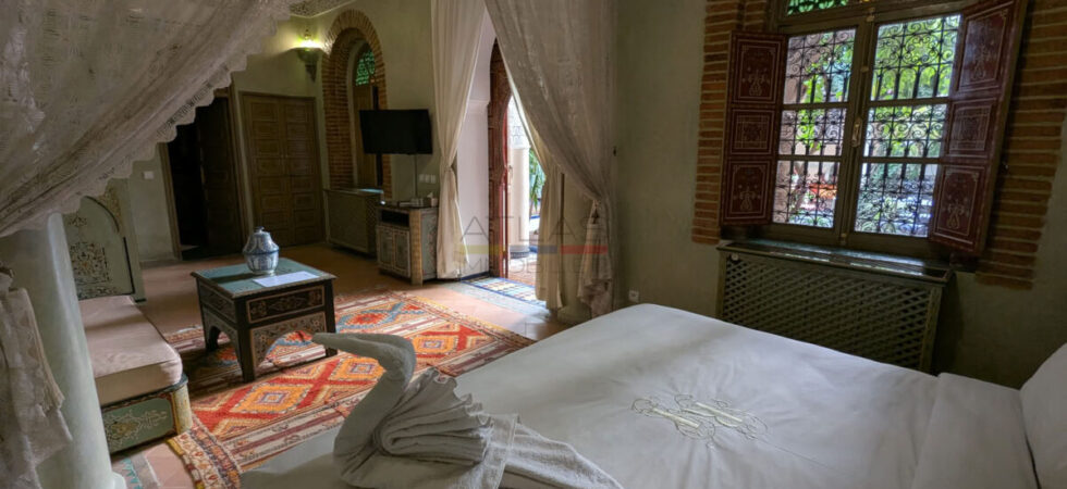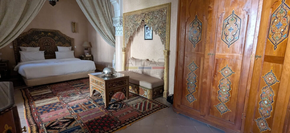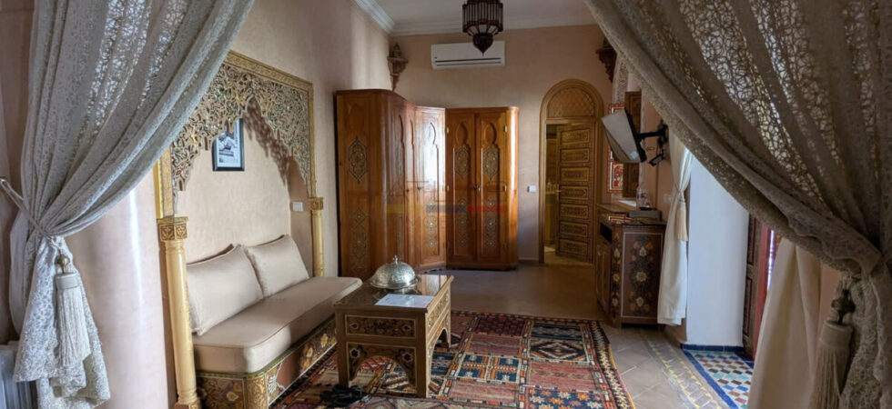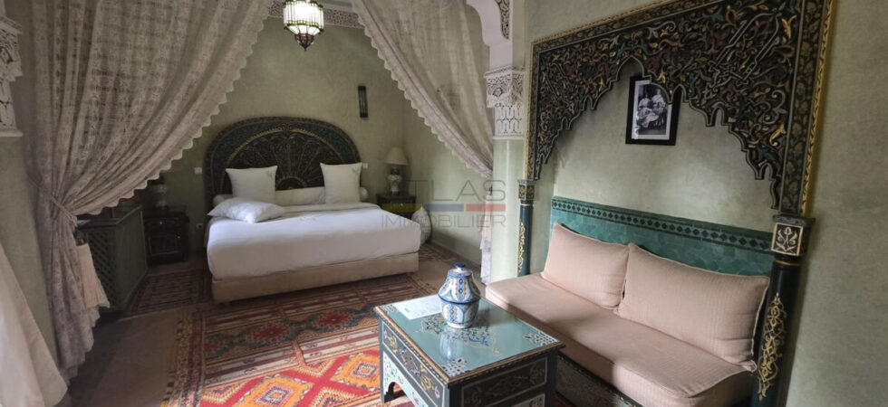 Cette propriété se distingue par une configuration unique : il s’agit de deux riads disposant chacun de leur propre titre de propriété, habilement réunis pour former un ensemble harmonieux et spacieux de 464 m² habitables.
