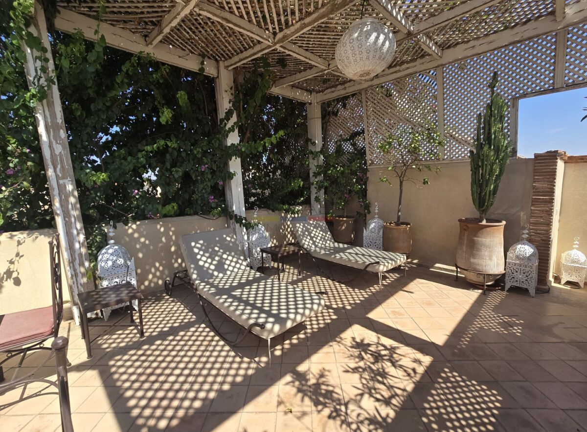 Cette propriété se distingue par une configuration unique : il s’agit de deux riads disposant chacun de leur propre titre de propriété, habilement réunis pour former un ensemble harmonieux et spacieux de 464 m² habitables.