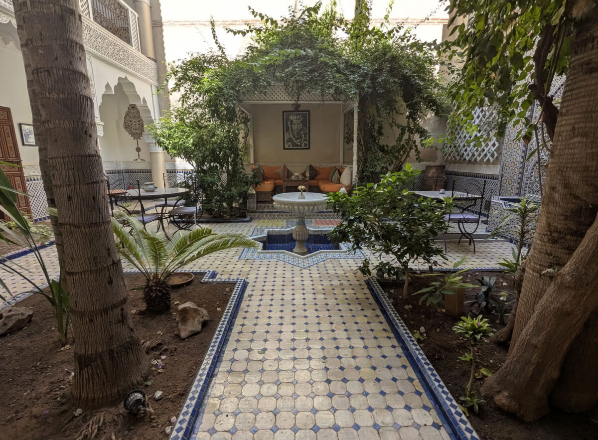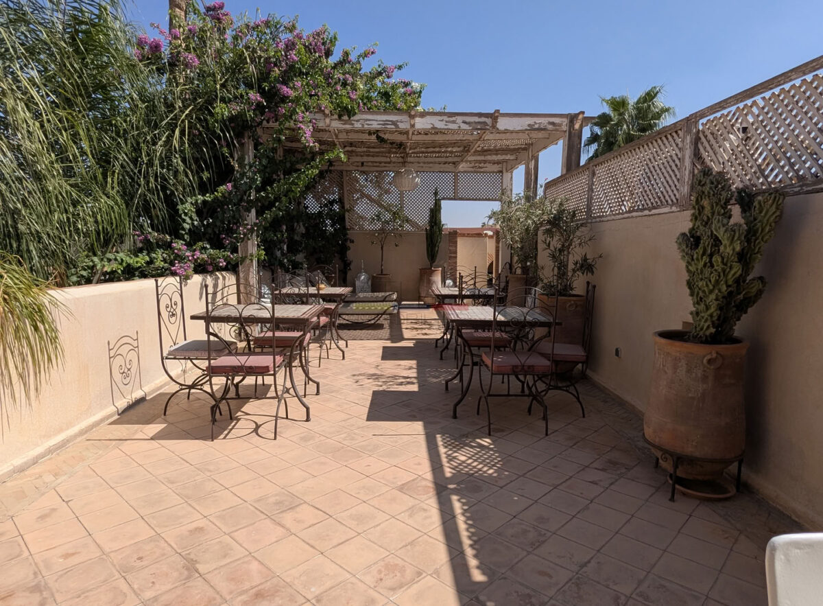 L’ensemble s’organise autour de 114 m² de patios verdoyants ornés de fontaines traditionnelles et de 176 m² de terrasses baignées de lumière, offrant plusieurs espaces de détente et de convivialité.