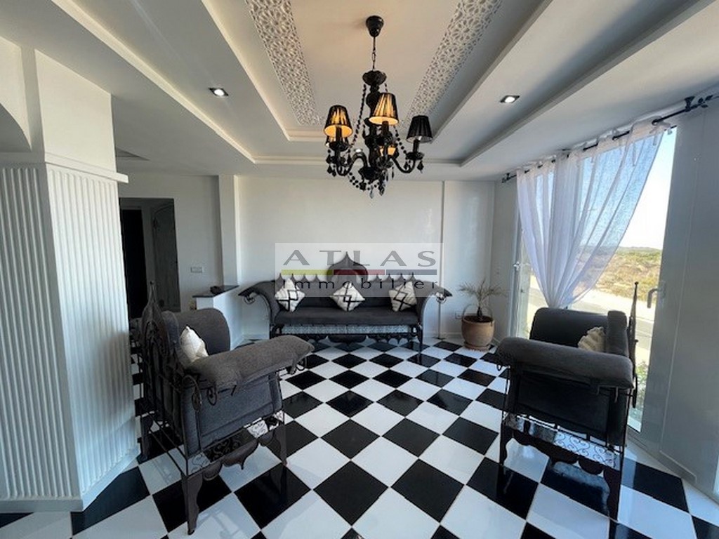 Plongez dans un cadre de rêve avec cet appartement neuf et ultra-moderne, parfaitement équipé pour un séjour de détente face à l’océan. Disponible pour 700 € par semaine, cet espace élégant vous offre un panorama spectaculaire sur les Îles Purpuraires et la charmante ville d’Essaouira, idéal pour une évasion ressourçante.