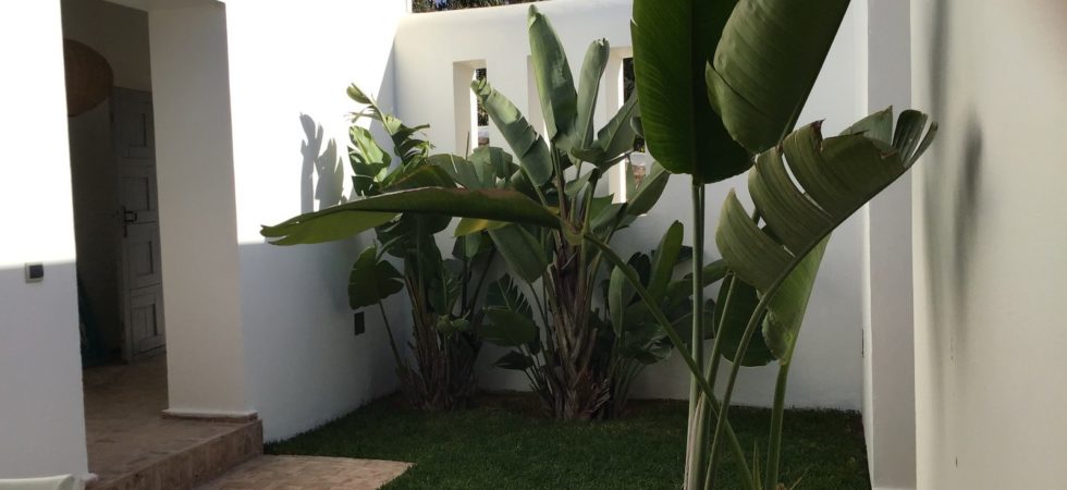 - Chambres : Trois belles chambres, chacune avec sa propre salle de bain et toilettes, disposées autour d’un magnifique patio à ciel ouvert, arboré et planté