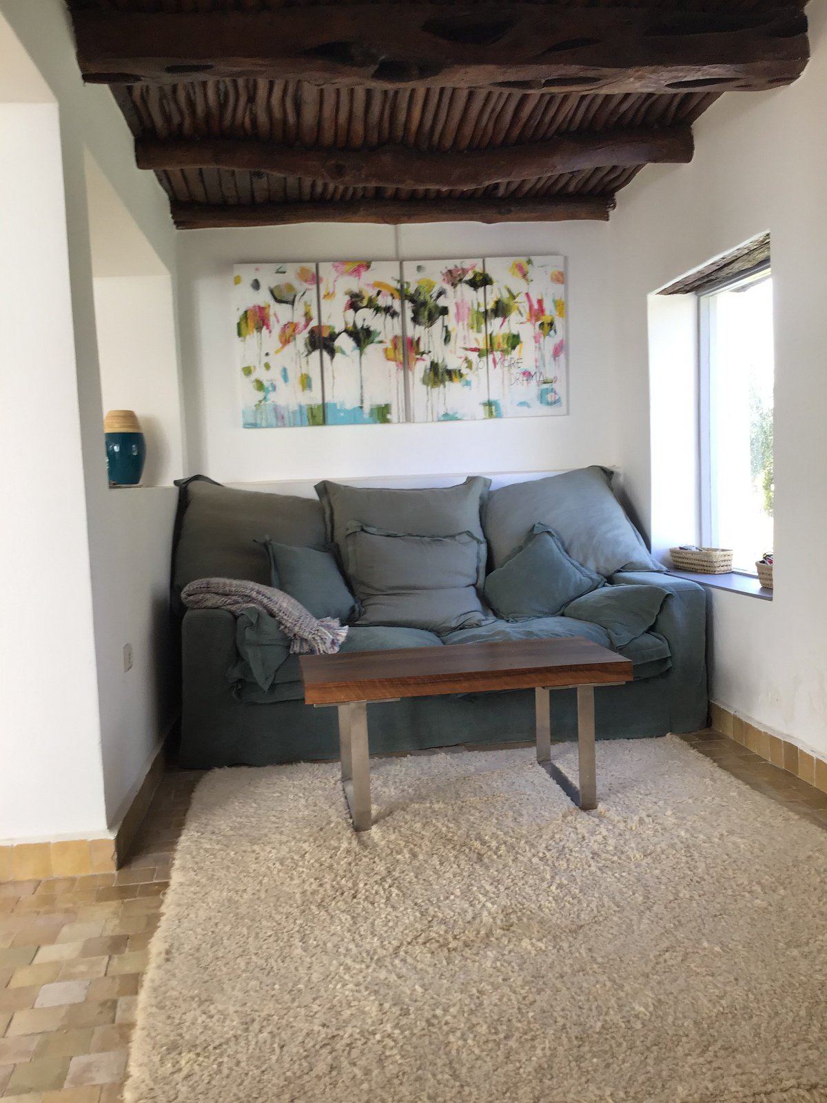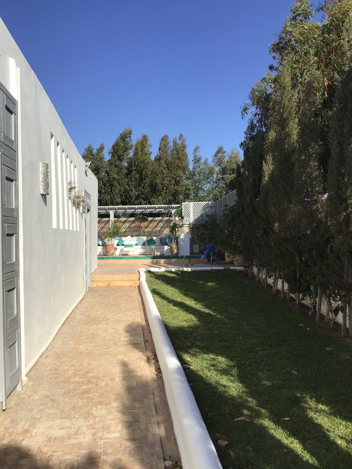 Découvrez cette magnifique villa récemment vendue, située à seulement 8 kilomètres d’Essaouira dans un emplacement privilégié. Implantée sur un terrain de 1167 m², entourée de murs en pierres sèches jointées, cette villa combine luxe et confort avec des finitions de grande qualité.