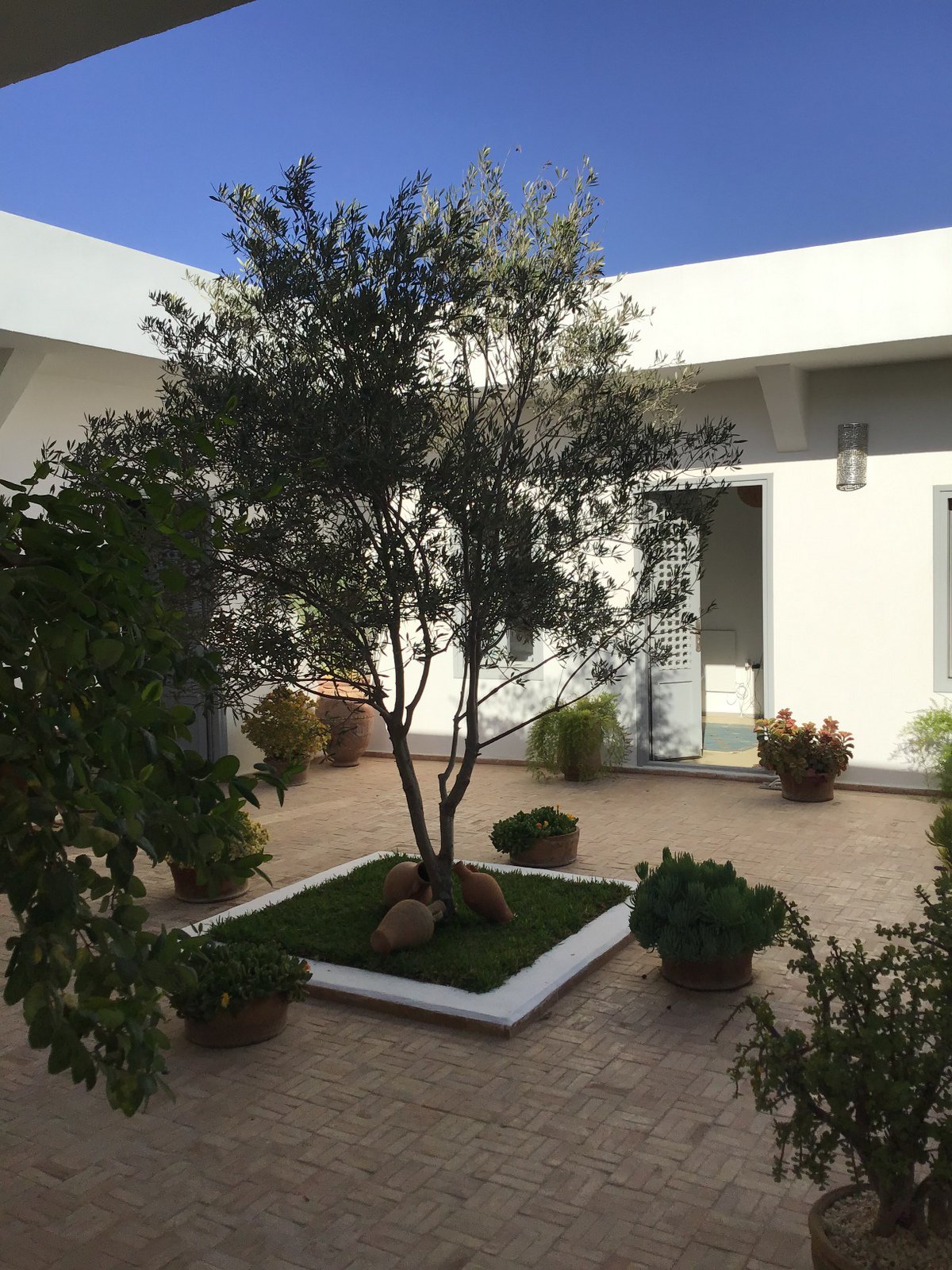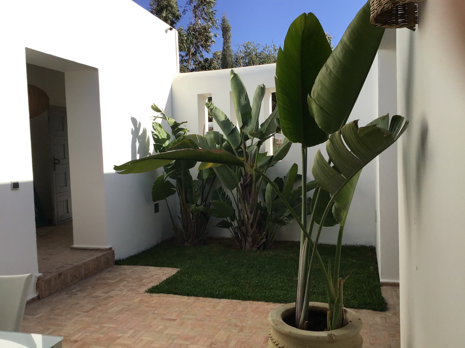 - Chambres : Trois belles chambres, chacune avec sa propre salle de bain et toilettes, disposées autour d’un magnifique patio à ciel ouvert, arboré et planté