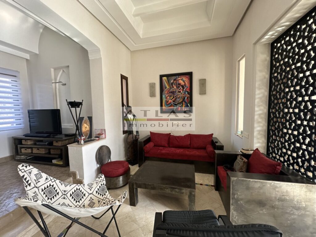 Située au cœur d’une petite copropriété privée et sécurisée, à seulement 20 minutes du centre-ville de Marrakech, sur la route de Fes, cette propriété de plain-pied offre une combinaison parfaite d’intimité, de confort, et de vues imprenables sur l’Atlas, le tout dans un cadre naturel exceptionnel.