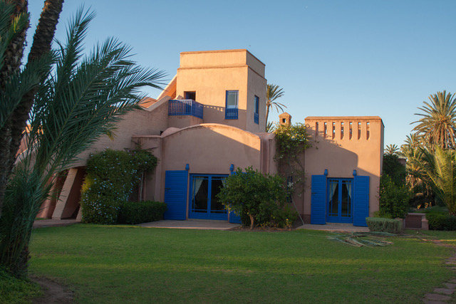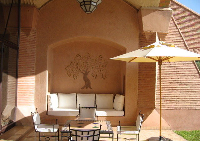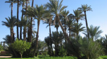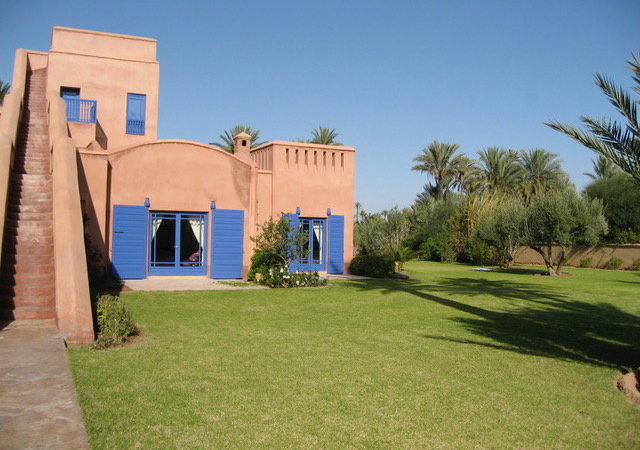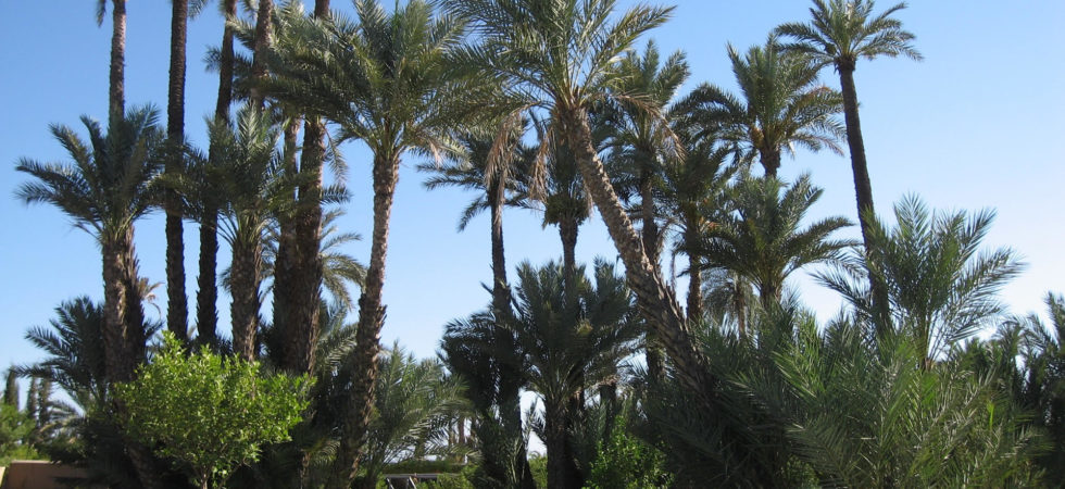 Un hectare clos de murs de deux mètres environ avec nombreux palmiers, oliviers, agrumes.