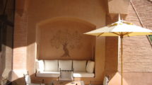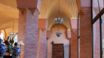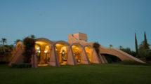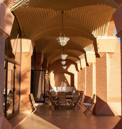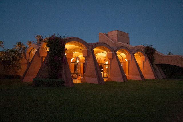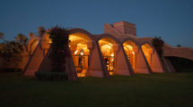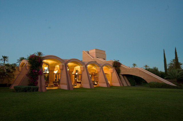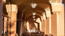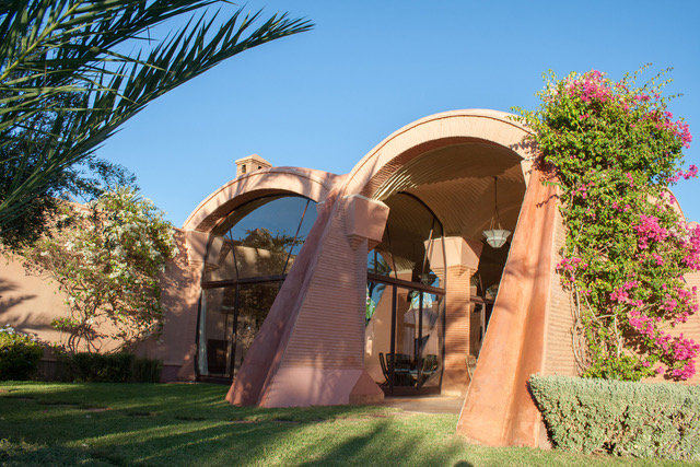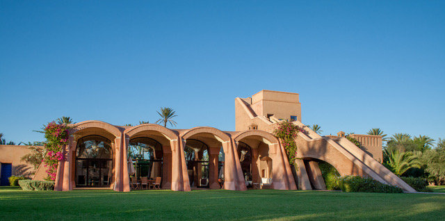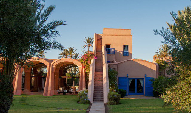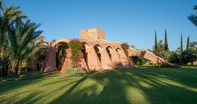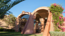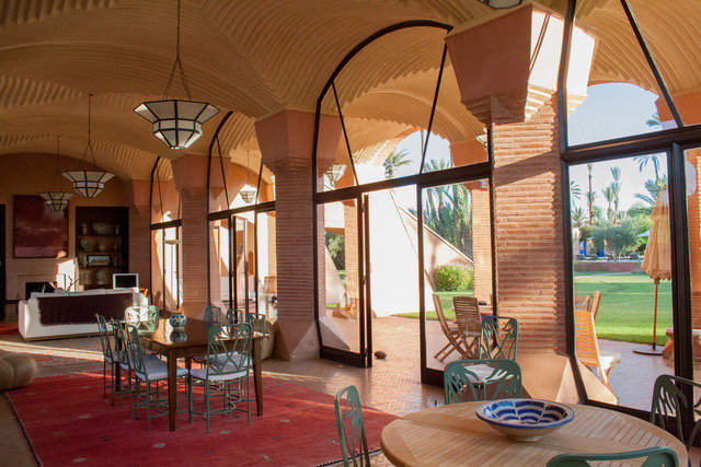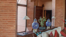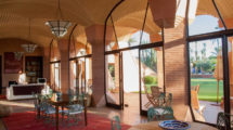 Pavillon piscine avec salon d’été. De chaque côté, des chambres d’invités.