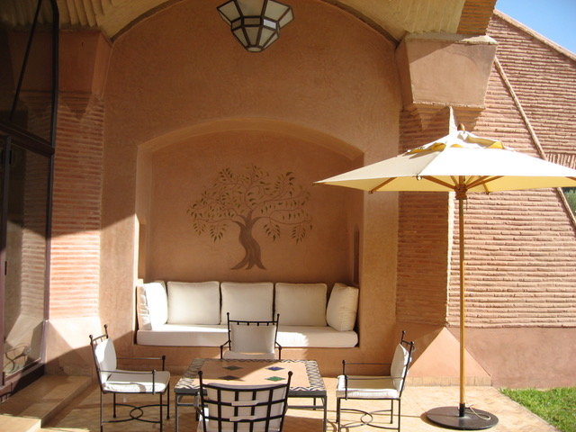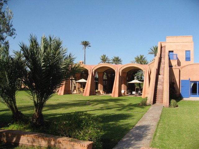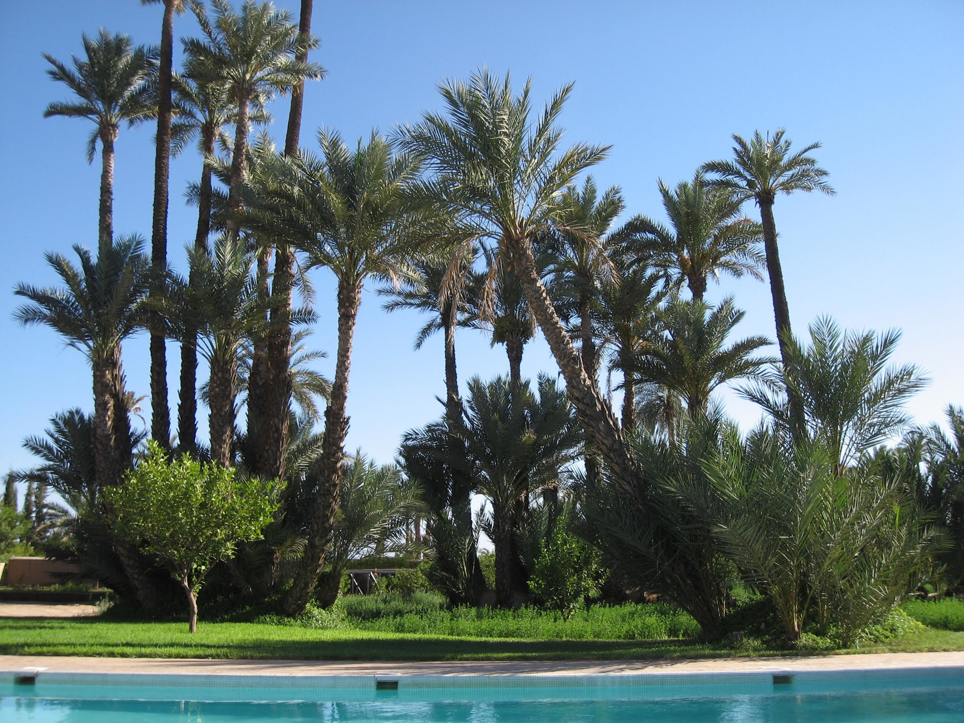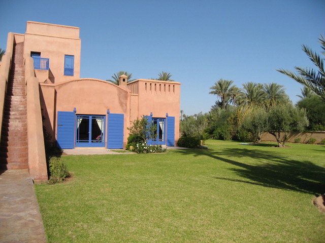 Un hectare clos de murs de deux mètres environ avec nombreux palmiers, oliviers, agrumes.