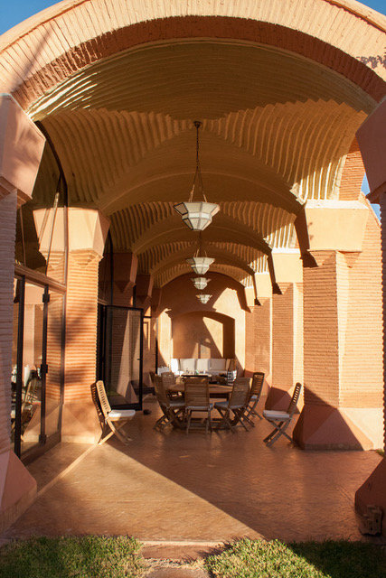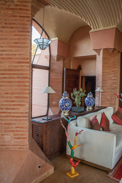 Pavillon piscine avec salon d’été. De chaque côté, des chambres d’invités.