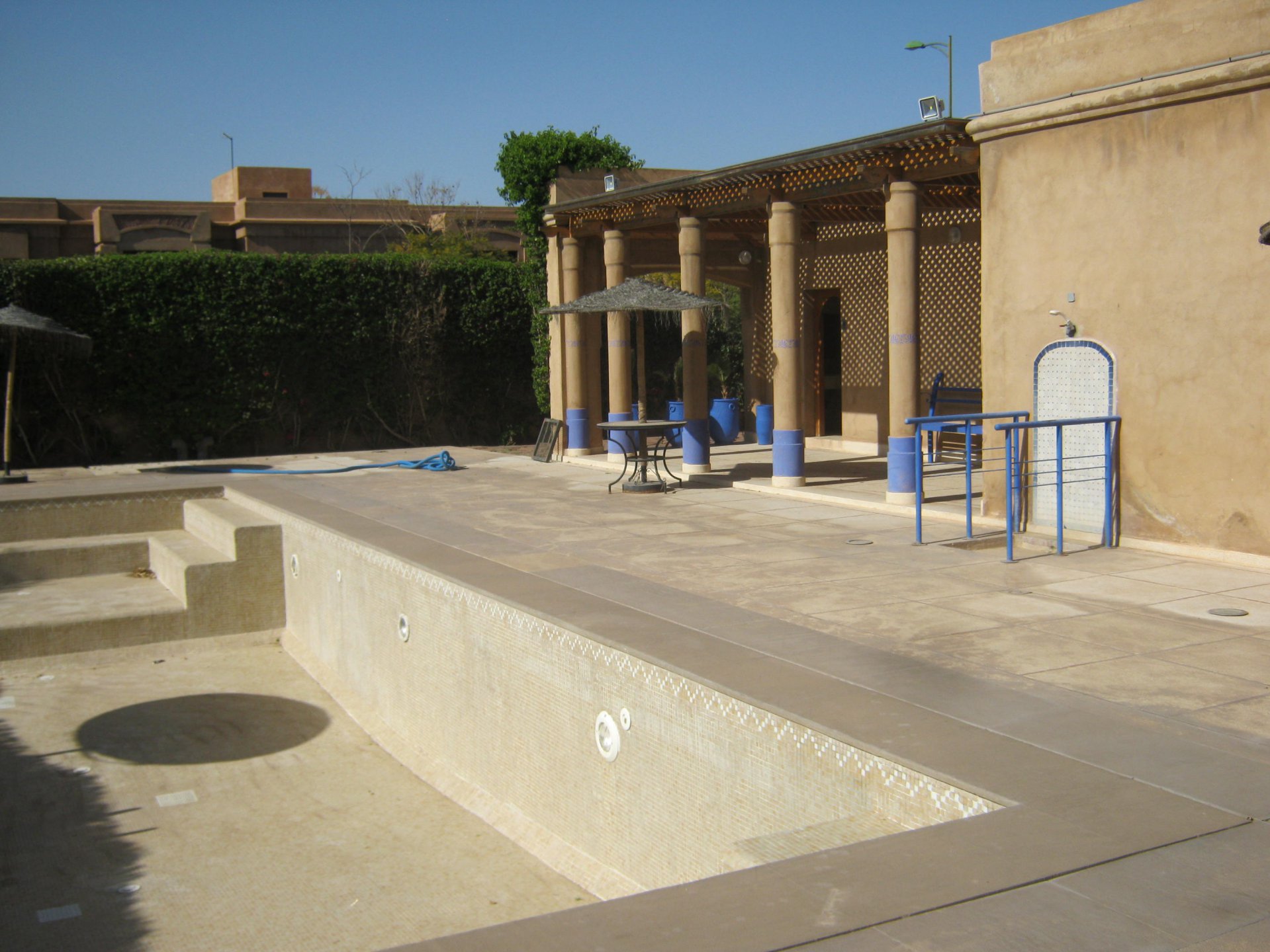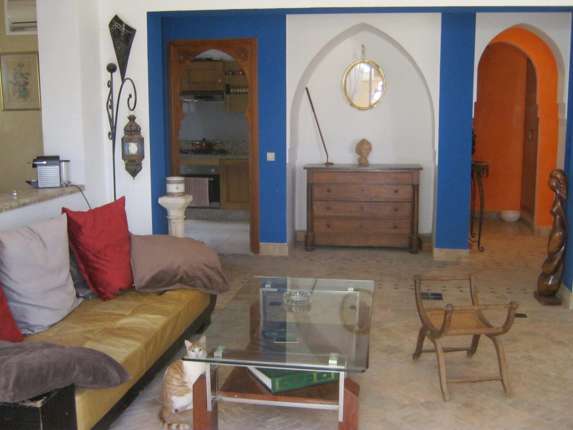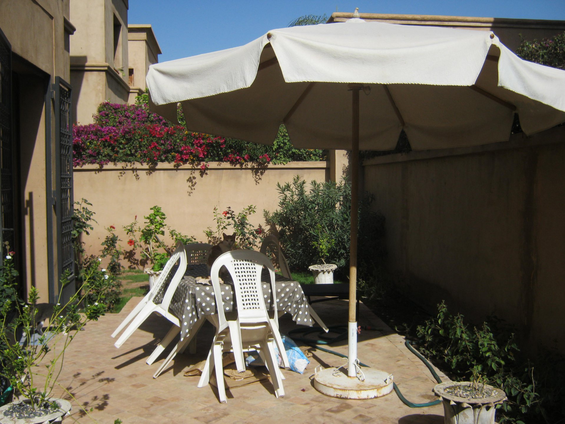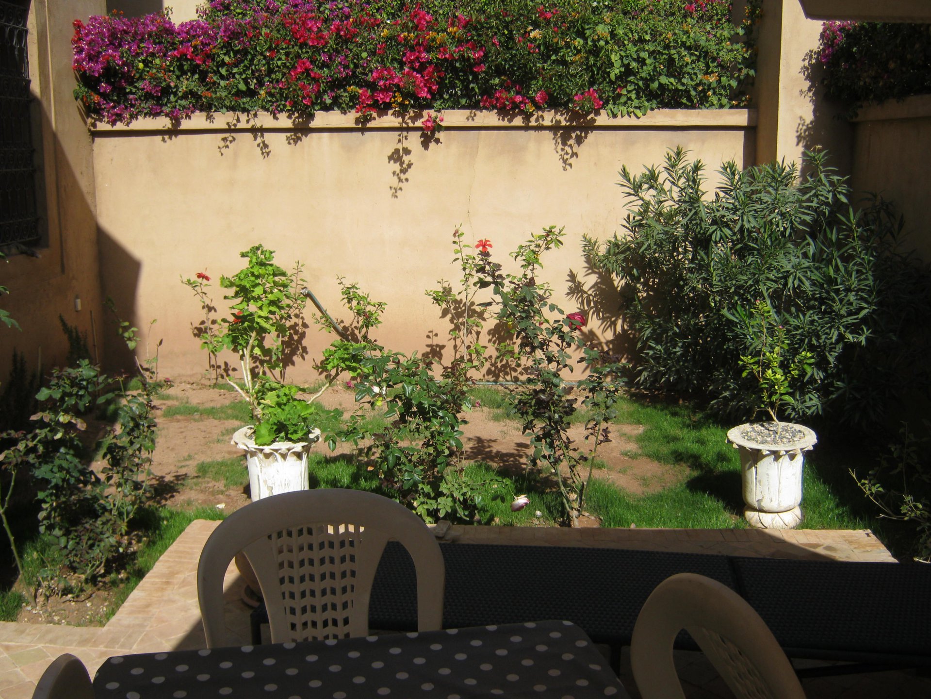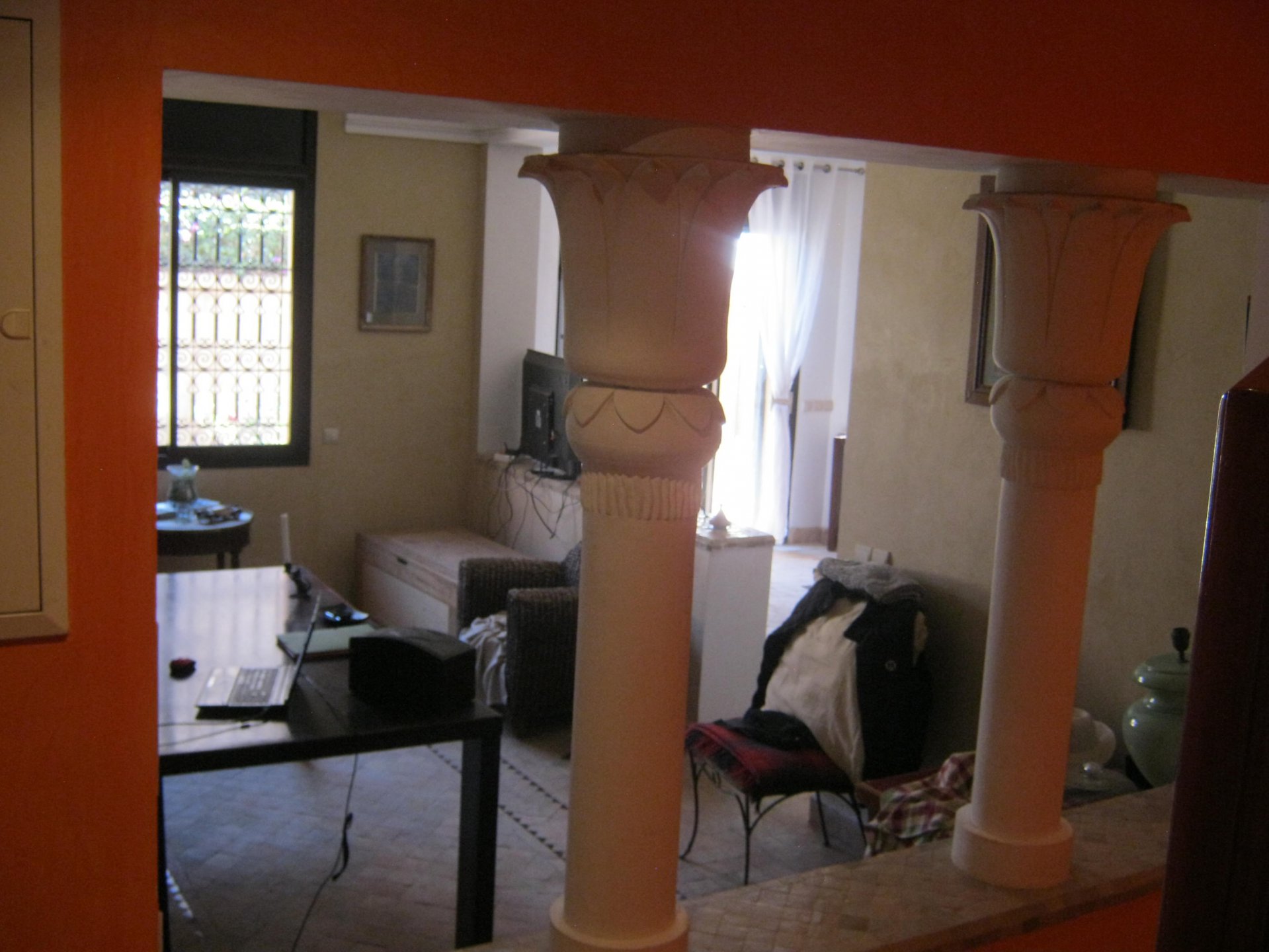 Cette villa construite selon un style oriental moderne vous offrira un confort douillet.Elle est composée de deux salons et une salle à manger avec cheminée et accès direct au jardin de 77 m². A côté,vous avez une cuisine semi-équipée donnant sur une cour buanderie.A l’étage,vous trouverez trois chambres avec une terrasse sans vis à vis.